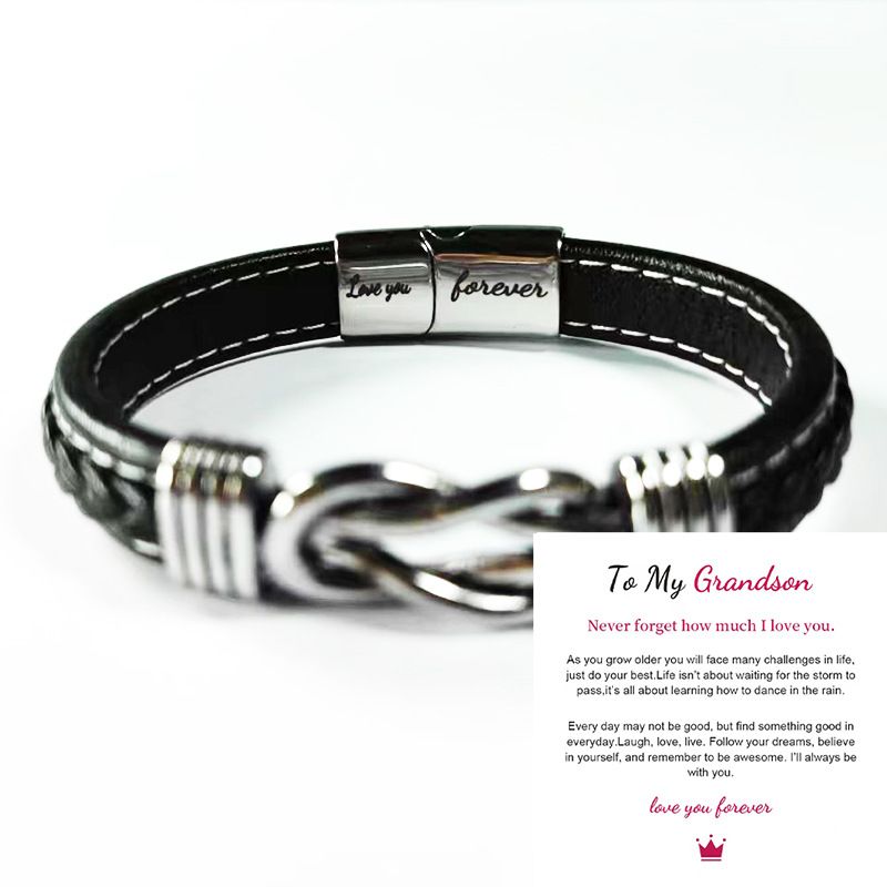 Colour: steel color without words, steel color without words + son card, steel color without words + grandson card, steel color Lov you forever + son card, steel color Lov you forever + grandson card, lettering Love My Son + son card, lettering Love My Grandson + grandson card