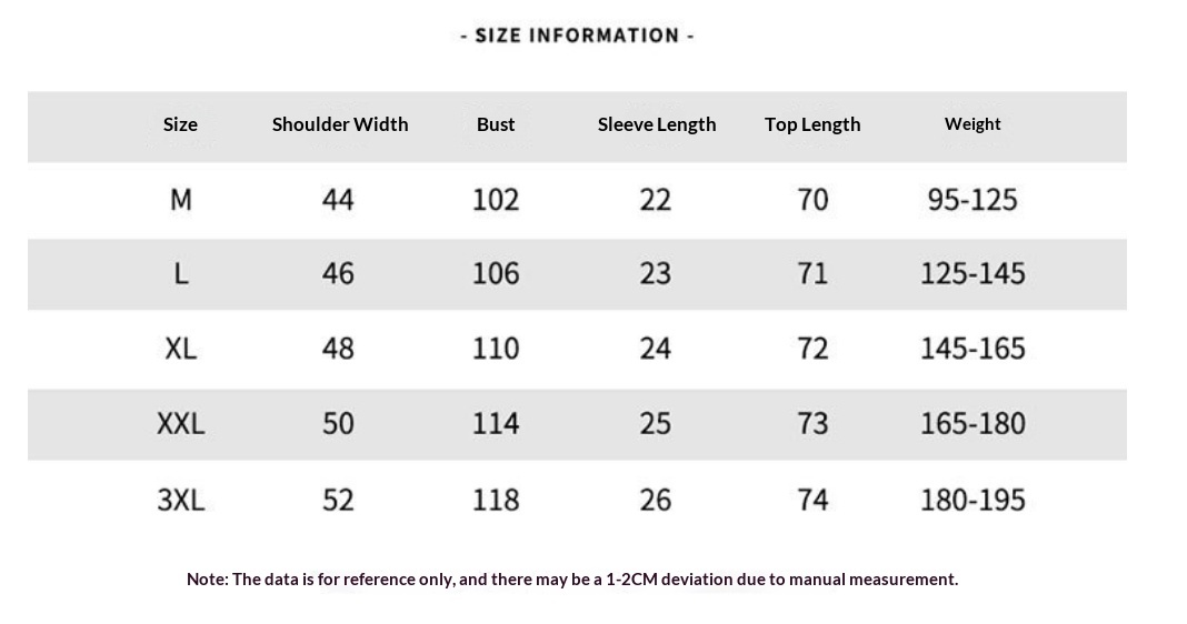 Size: M, L, XL, XXL, XXXL