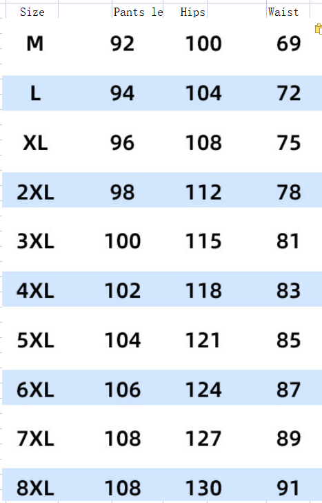 Size:M,L,XL,2XL,3XL,4XL,5XL,6XL,7XL,8XL