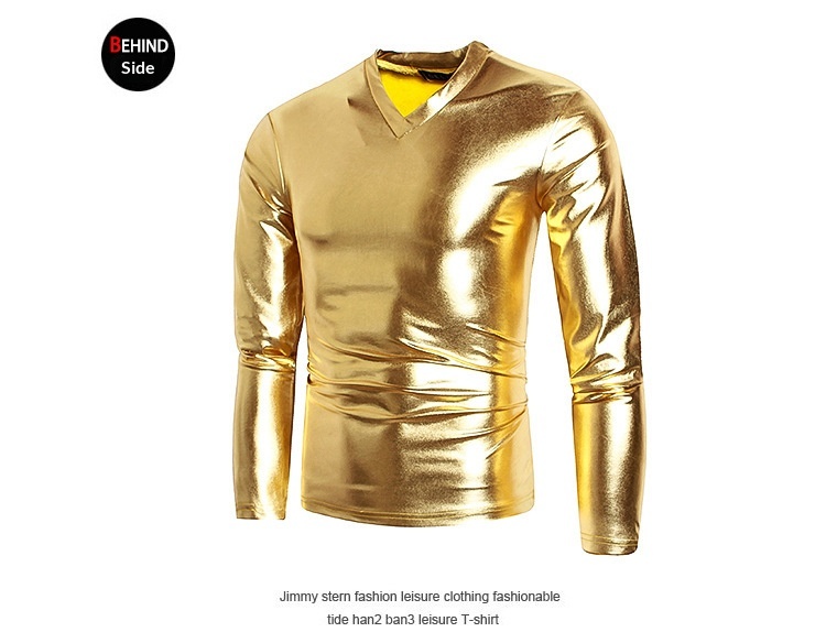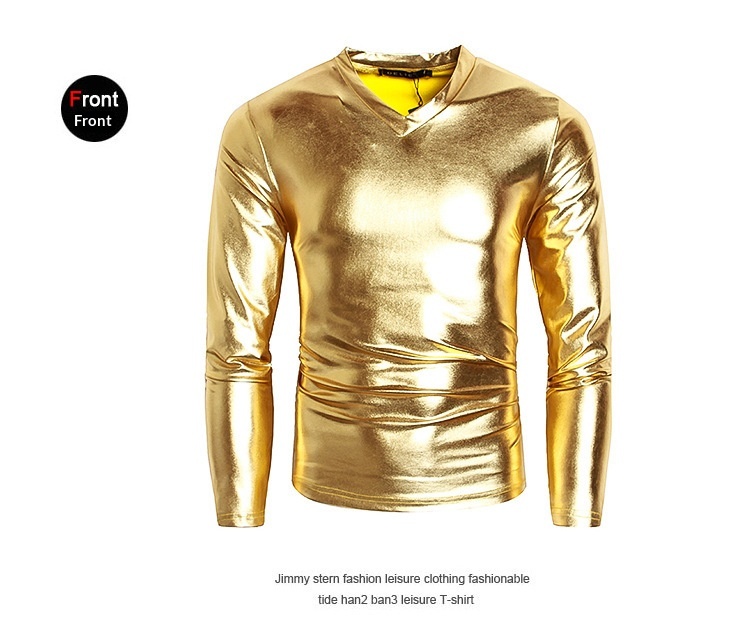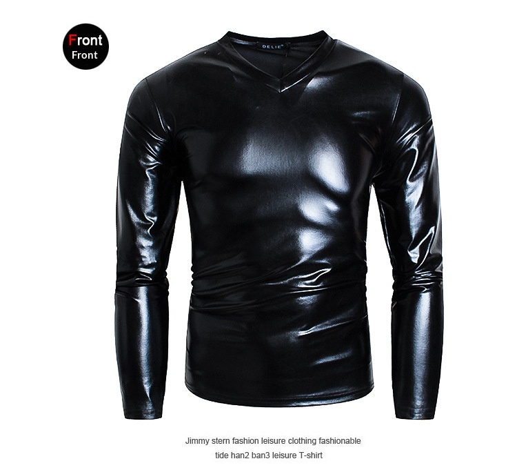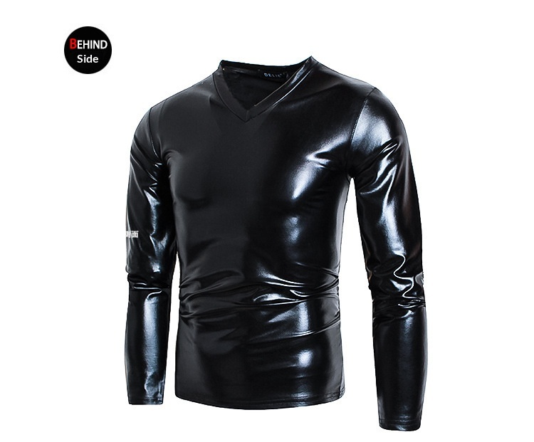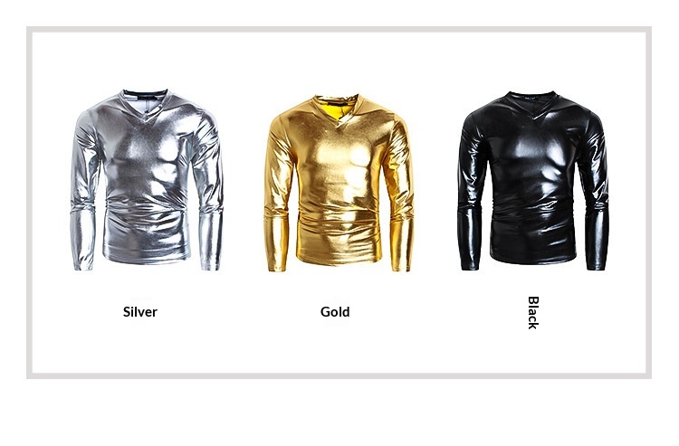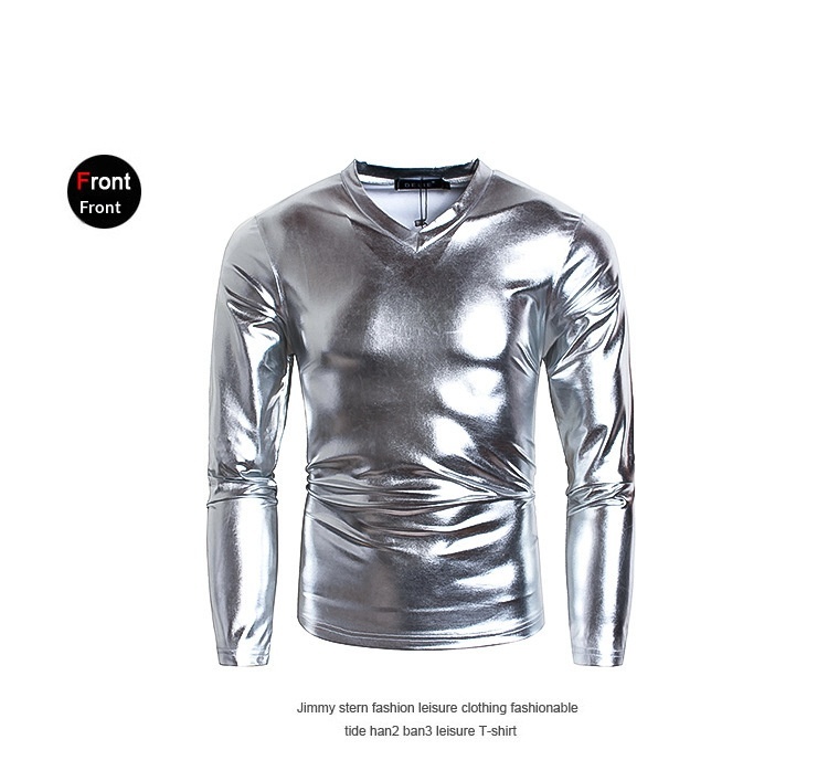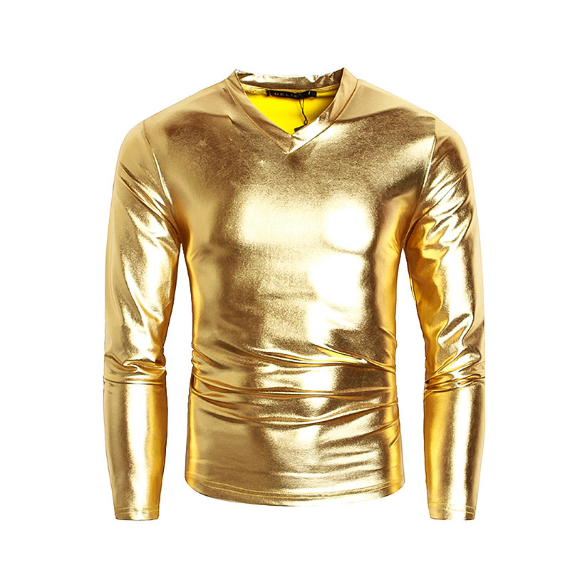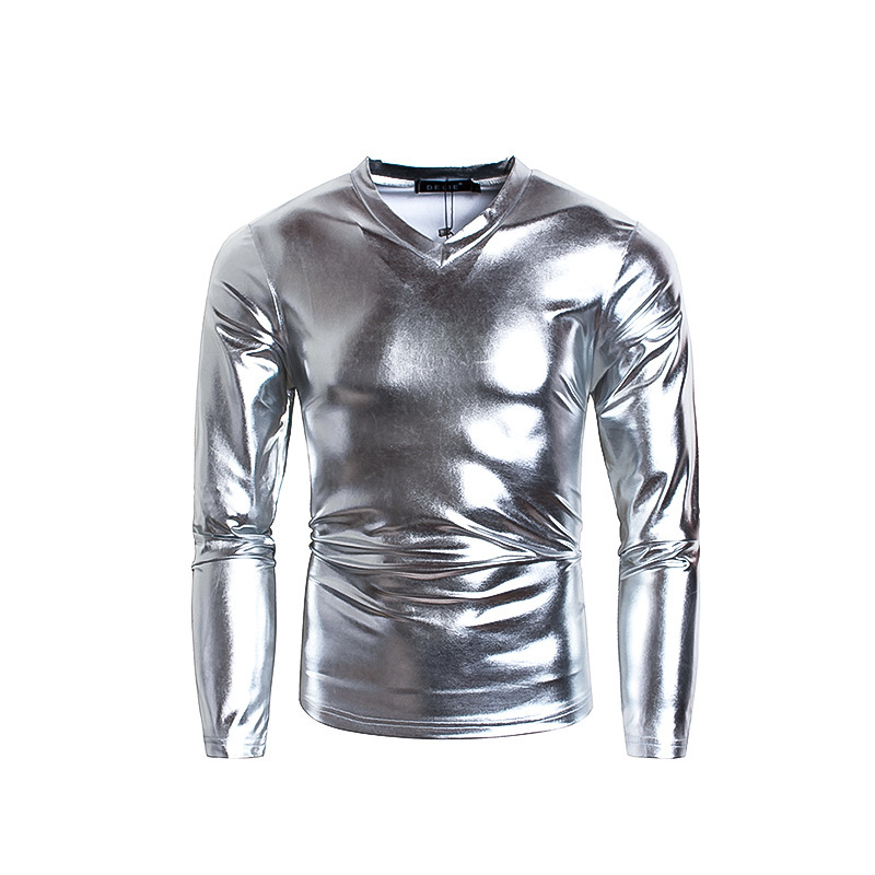Men's Fashionable V-neck Glossy Long-sleeve Base Shirt Performance Outfit