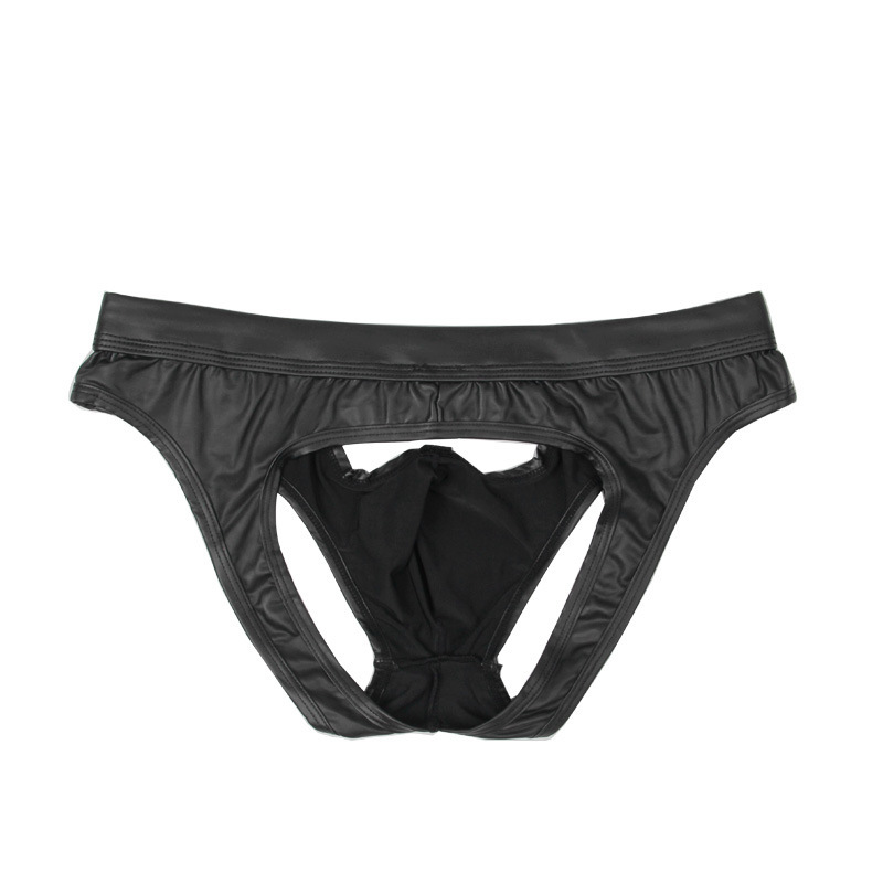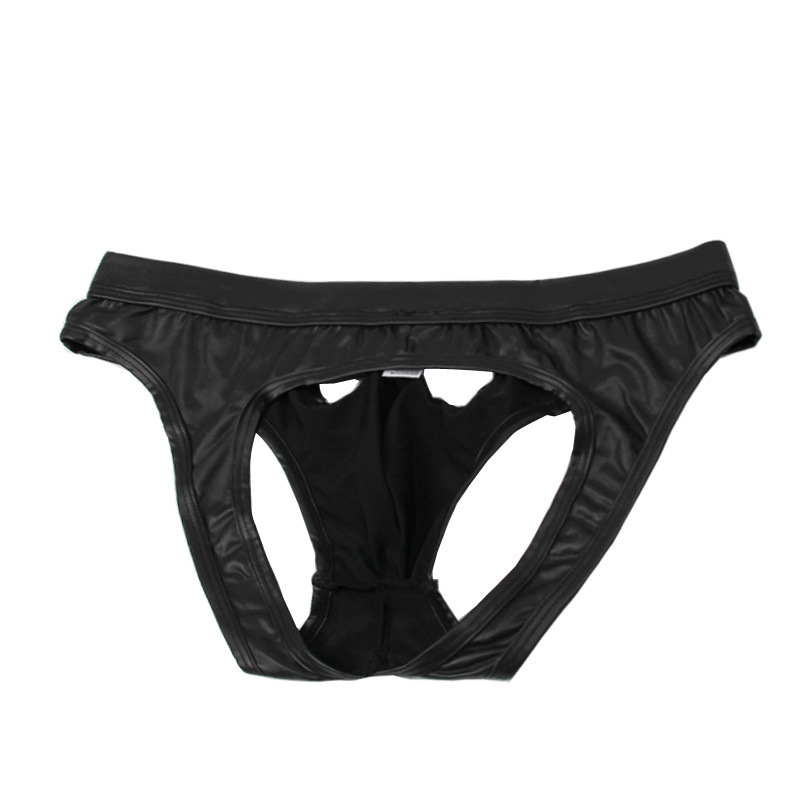 Men's Faux Leather Back Empty Briefs U Convex Patent Leather Youth Shorts