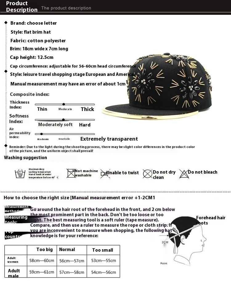 Size: head circumference 56-60cm adjustable