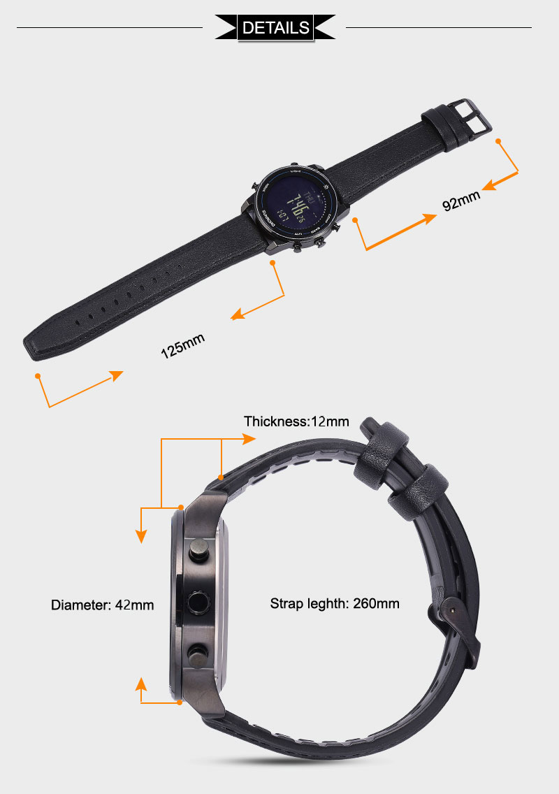 Includes compass, altimeter, barometer, thermometer, barometric trend and altitude trend
