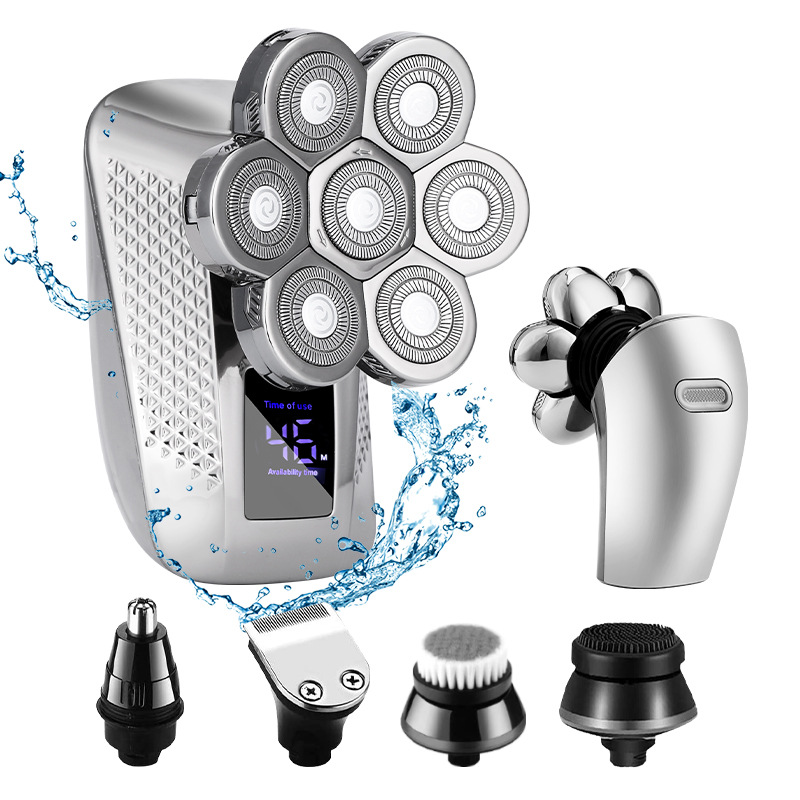PProduct accessories: body + 7D shaving head + barber head + nose hair trimming scissors head + massage head + cleansing brush + USB charging cable + limit comb * 3 (3/5/7mm) + knife head protective cover + cleaning Brush + English manual.