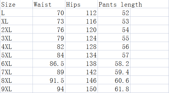 Size: L, XL, XXL, XXXL, 4XL, 5XL, 6XL, 7XL, 8XL, 9XL