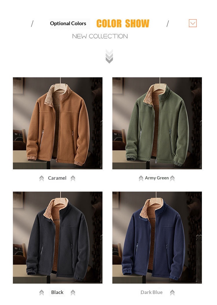 Color: stand collar caramel color, black stand collar, stand collar army green, stand collar dark blue, hooded caramel color, hooded black, hooded army green, hooded dark blue
