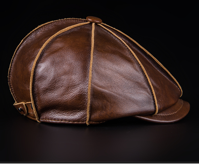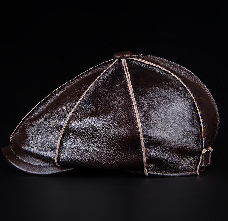 Men'S Genuine Leather Octagonal Cap