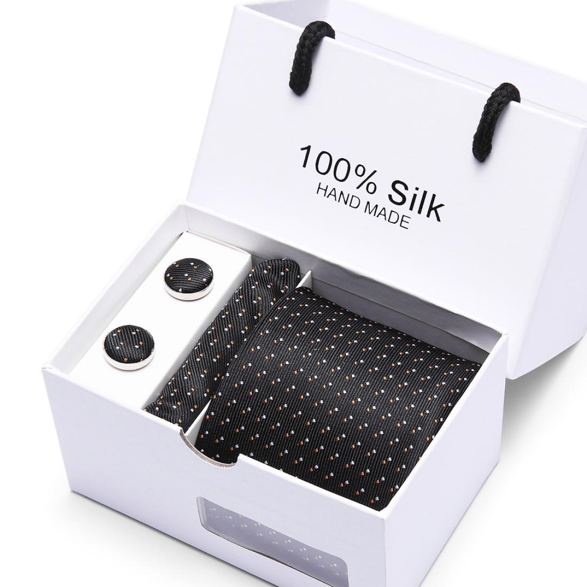 This tie is made of high-density polyester silk fabric, three-dimensional cutting, machine stitching, high density, exquisite workmanship, the tie is not easy to loose threads and deform, so you can buy it with confidence.