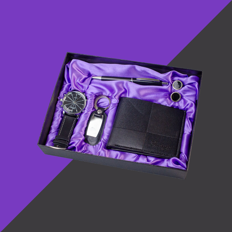 Style 25:5-piece black (watch keychain pen wallet cufflinks exquisite gift box)