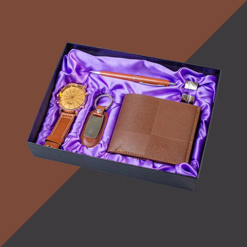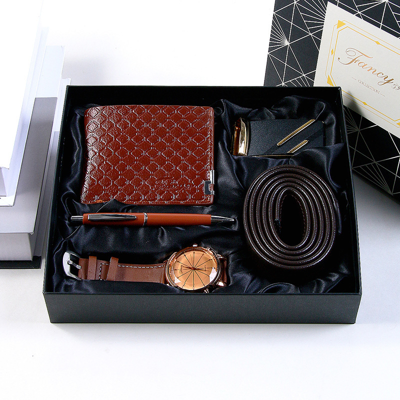 Style 26:5-piece set Brown (watch keychain pen wallet cufflinks exquisite gift box)