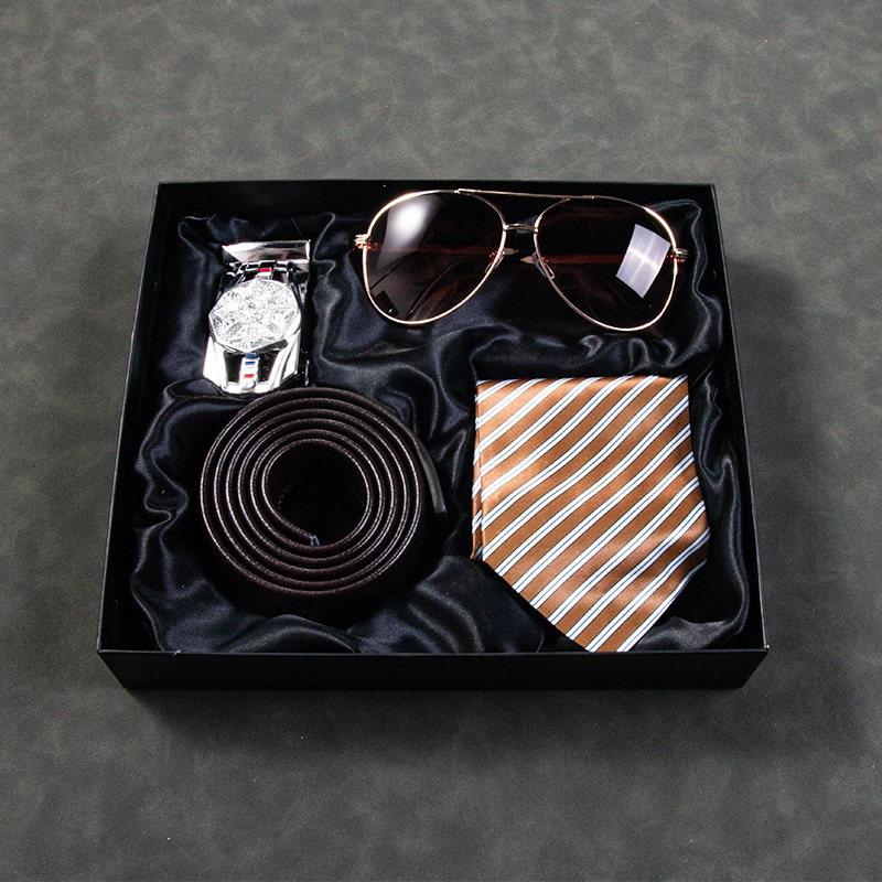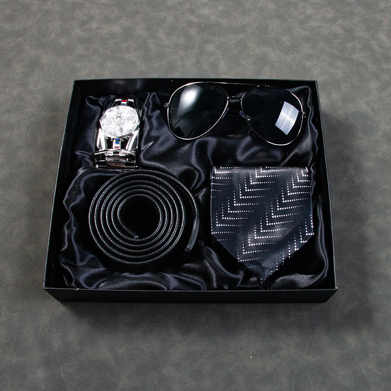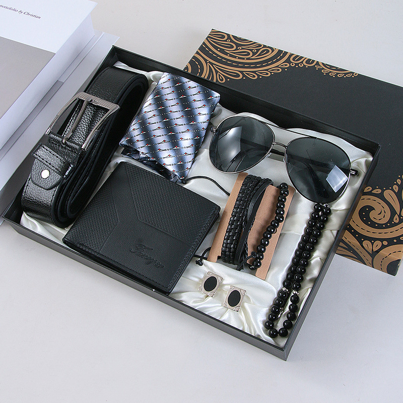 Style 1:7-piece black (belt WALLET WATCH keychain pen sunglasses exquisite gift box)