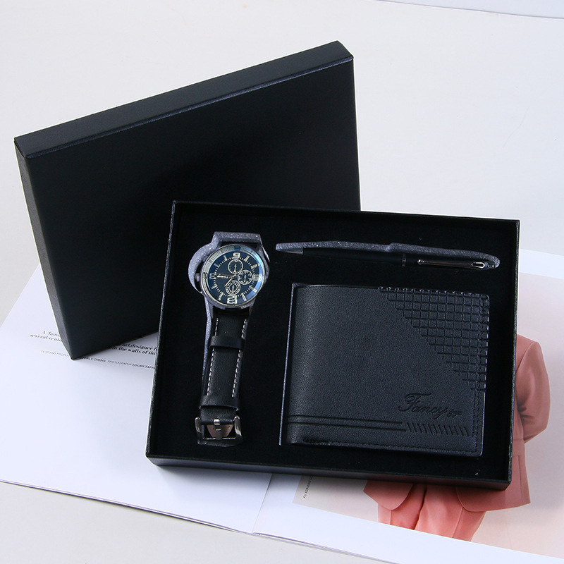 Style 4:3-piece black (WALLET WATCH exquisite gift box)