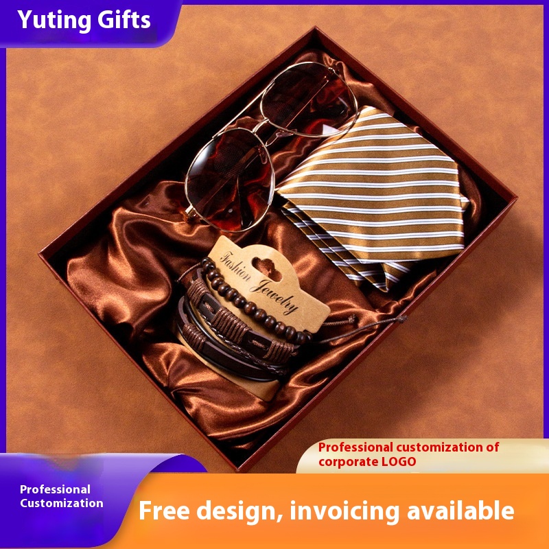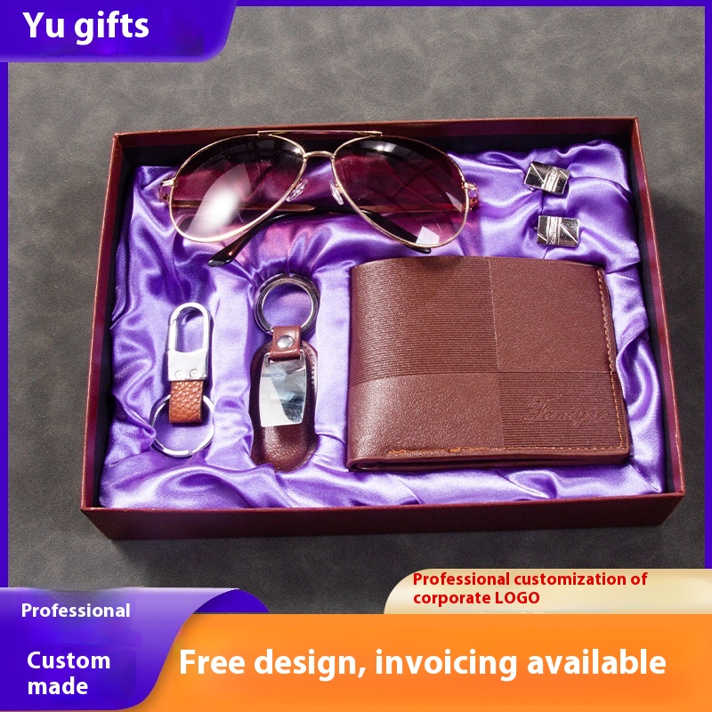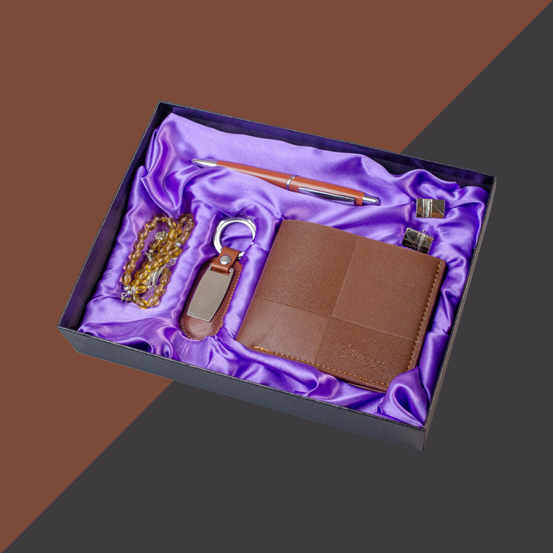 Style 24:5-piece set Brown (beads keychain pen wallet cufflinks exquisite gift box)