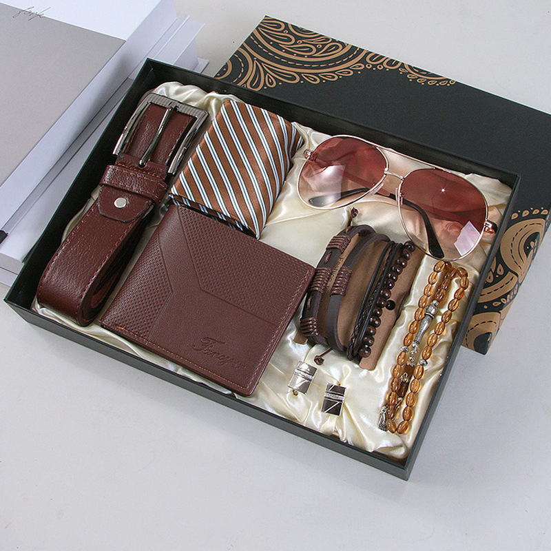 Style 11:10-piece set Brown (belt wallet watch bracelet 3 key chain pen beads exquisite gift box)