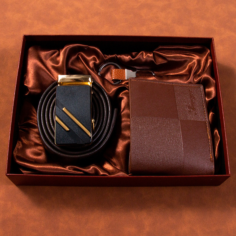 Style 22:7-piece set Brown (wallet automatic buckle buckle belt key chain pen cuff exquisite gift box)