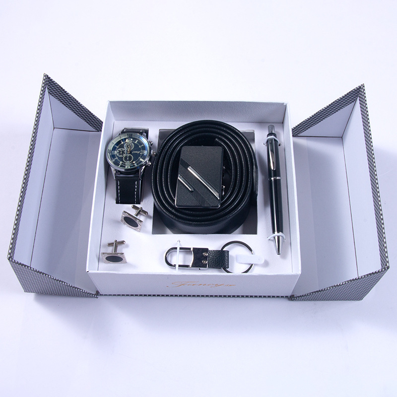 Model 14:6-piece black (watch wallet keychain cufflinks pen double-door giftbox)