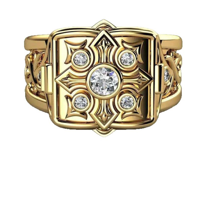 Mens Gold-Colored Cross-Pattern Ring With A Hinged Lid