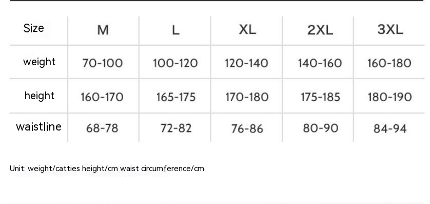 Size: M(80-100) kg,L(100-120) kg,XL(120-140) kg,2XL(140-160) kg,3XL(160-180) kg