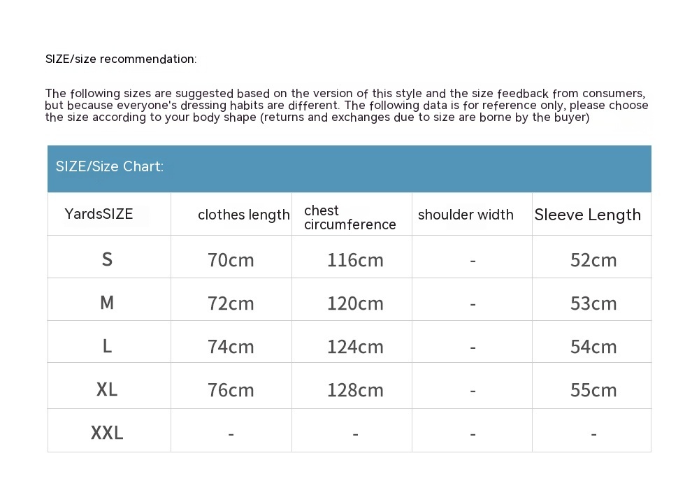 1. Asian sizes are 1 to 2 sizes smaller than European and American people. Choose the larger size if your size between two sizes. Please allow 2-3cm differences due to manual measurement. 2. Please check the size chart carefully before you buy the item, if you don't know how to choose size, please contact our customer service. 3.As you know, the different computers display colors differently, the color of the actual item may vary slightly from the following images.