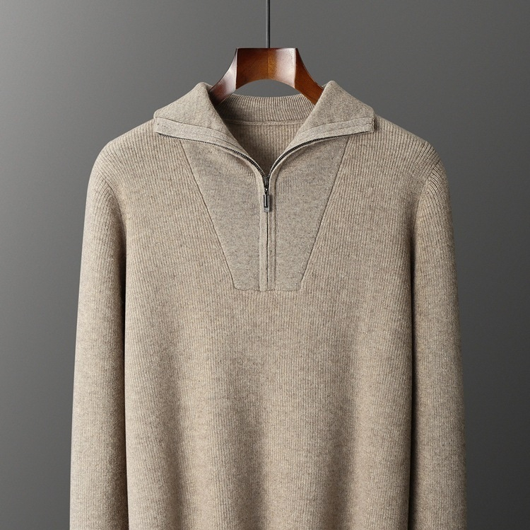 Men's Half Zipper Ingot Needle Thickened Casual Business Long Sleeve Warm Sweater