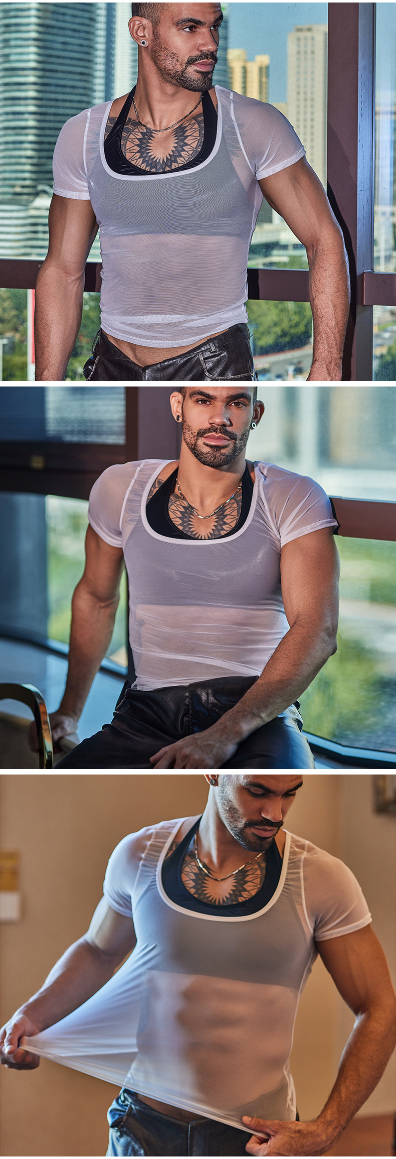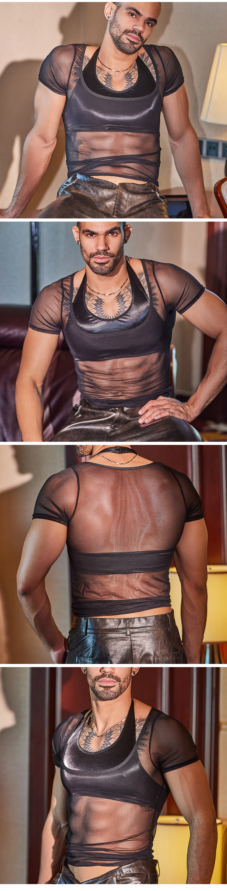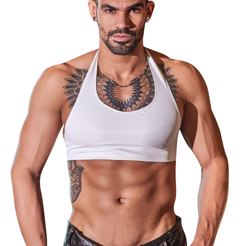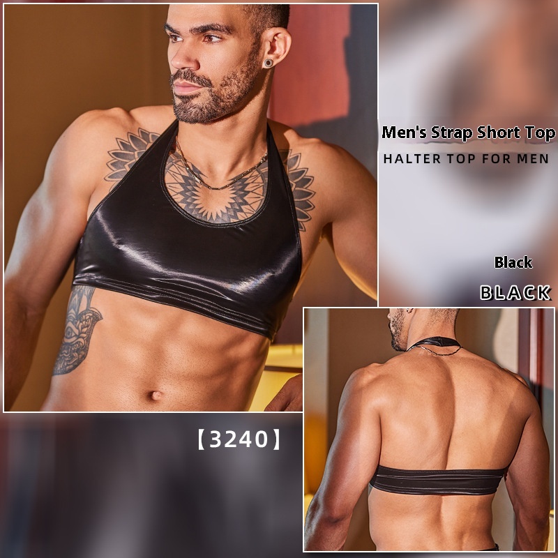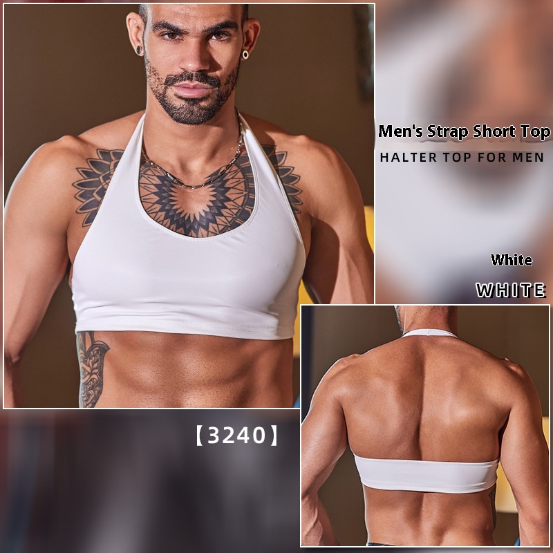 Men's Halterneck With Suspenders Short Soft Slim-fitting Seamless Top