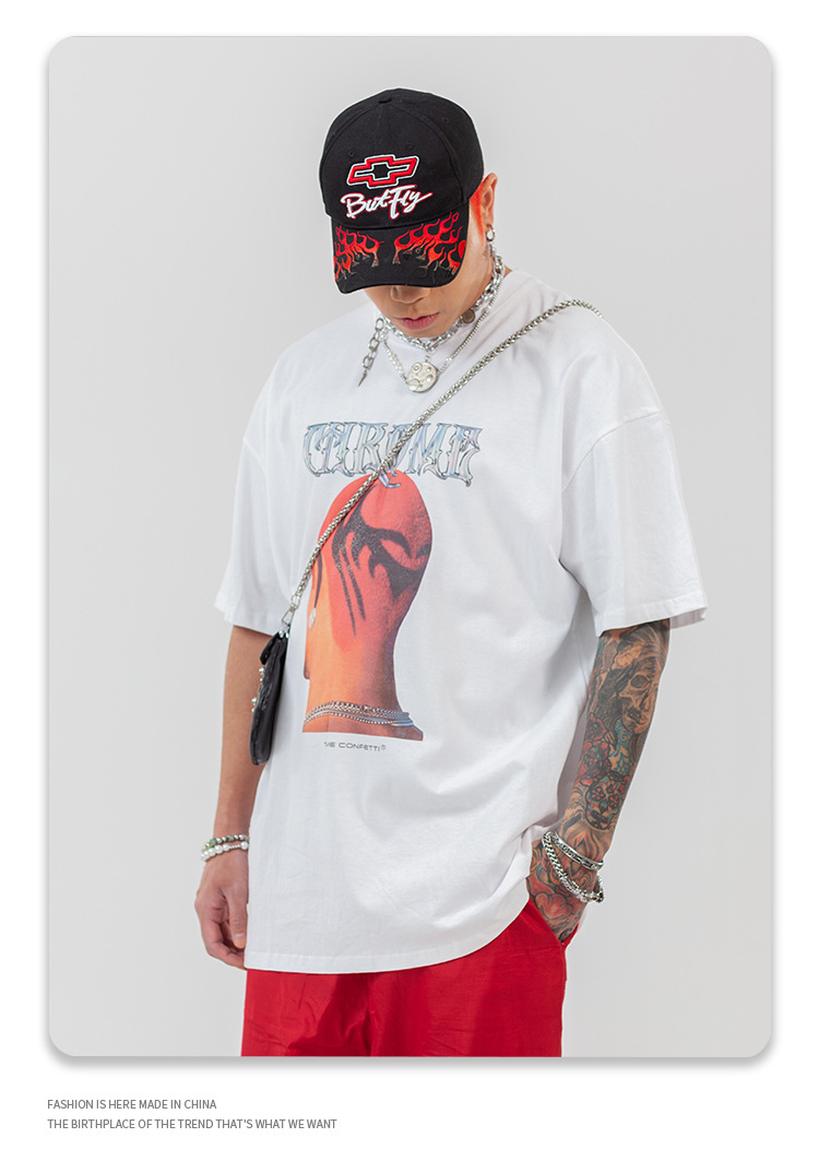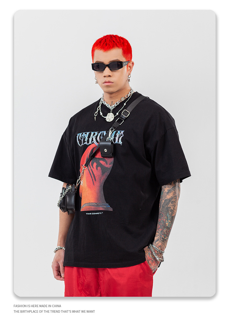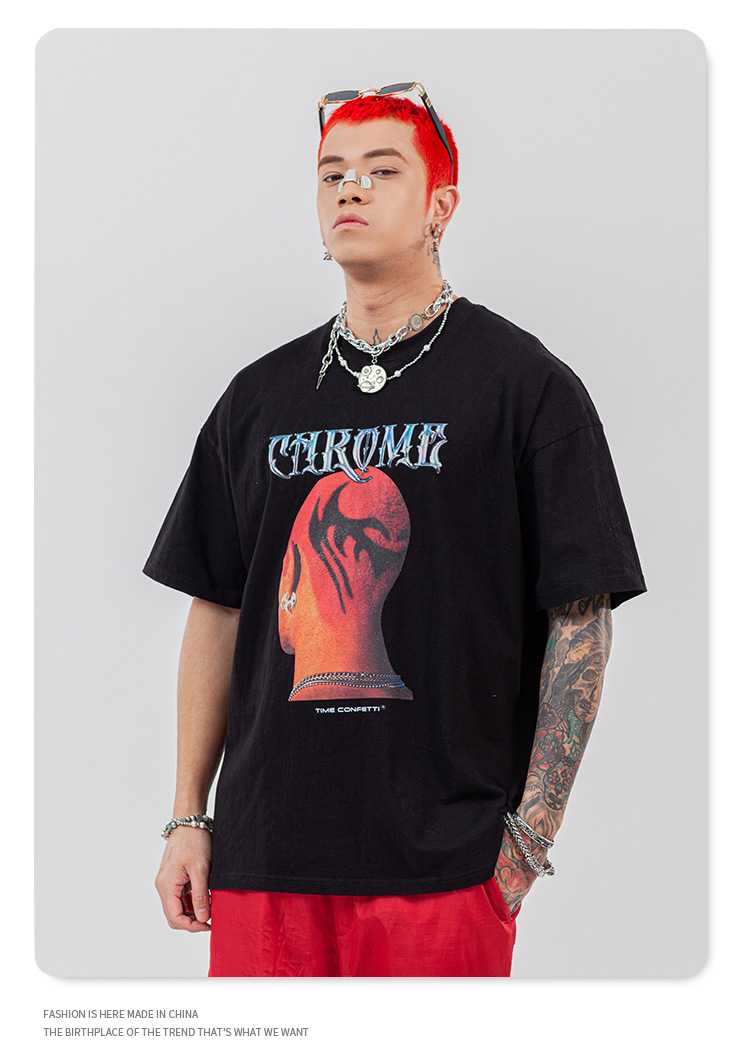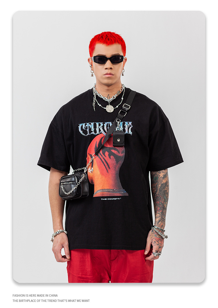 Men's Head Print Rock Hip-hop Street Short Sleeve