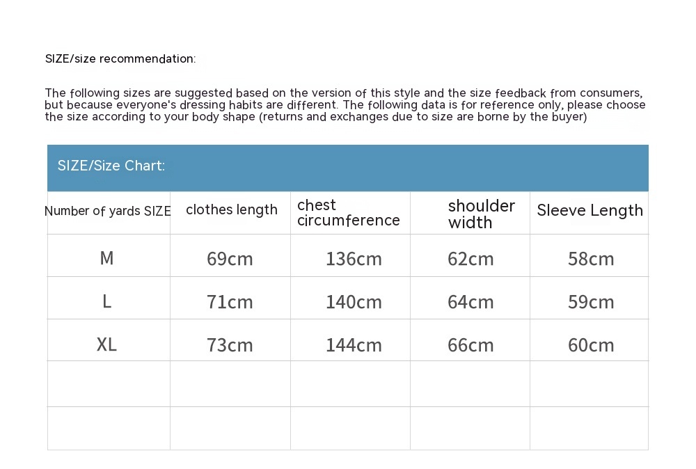 1. Asian sizes are 1 to 2 sizes smaller than European and American people. Choose the larger size if your size between two sizes. Please allow 2-3cm differences due to manual measurement. 2. Please check the size chart carefully before you buy the item, if you don't know how to choose size, please contact our customer service. 3.As you know, the different computers display colors differently, the color of the actual item may vary slightly from the following images.