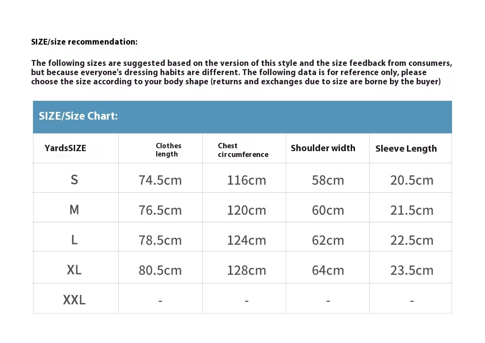 1. Asian sizes are 1 to 2 sizes smaller than European and American people. Choose the larger size if your size between two sizes. Please allow 2-3cm differences due to manual measurement. 2. Please check the size chart carefully before you buy the item, if you don't know how to choose size, please contact our customer service. 3.As you know, the different computers display colors differently, the color of the actual item may vary slightly from the following images.