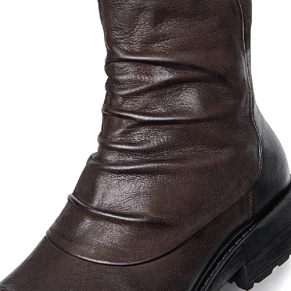 Men's High Top Long Platform Side Zip Biker Boots
