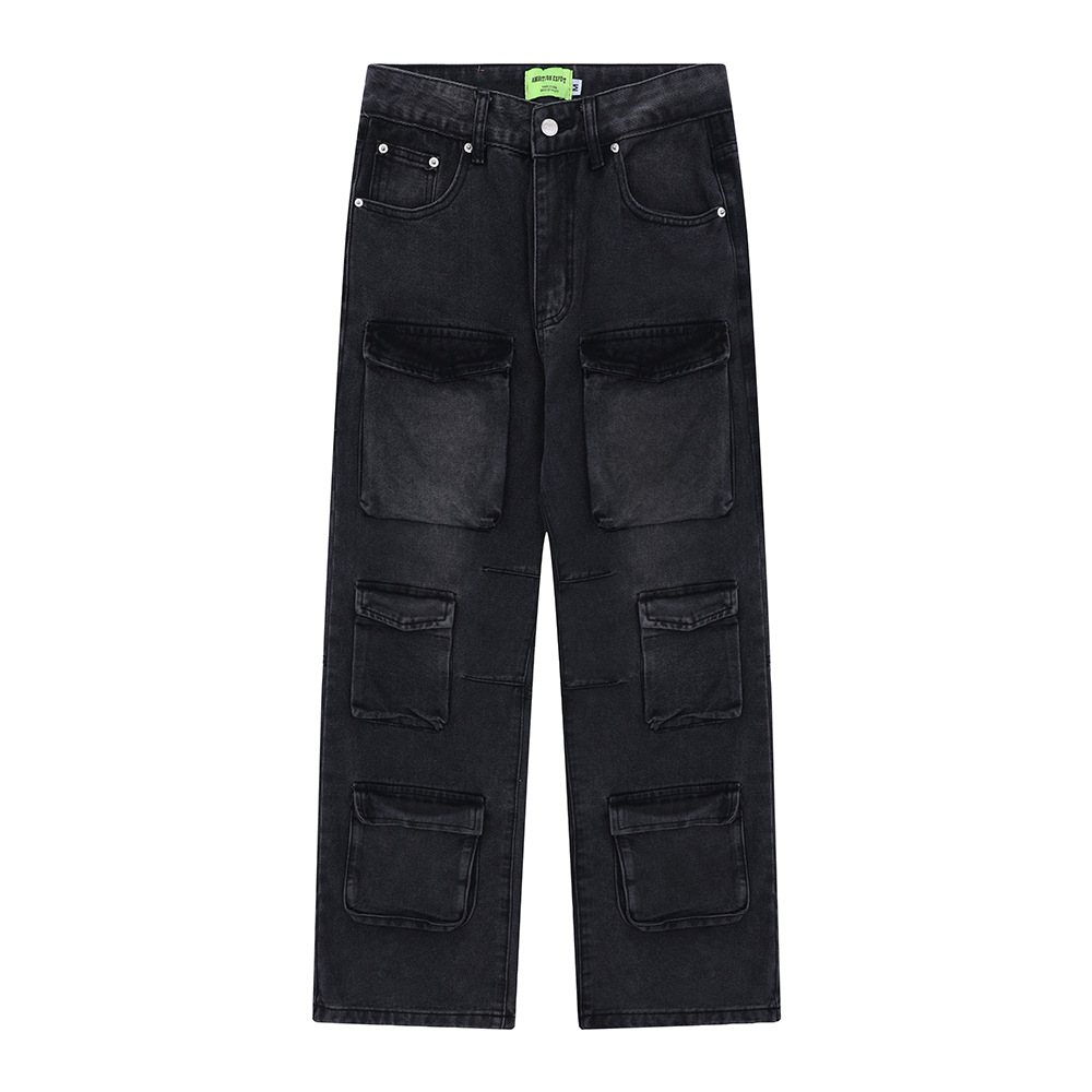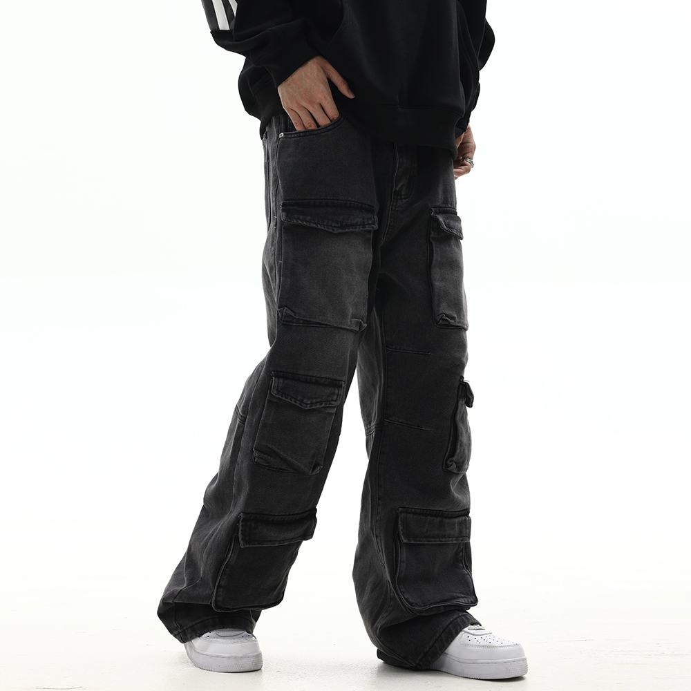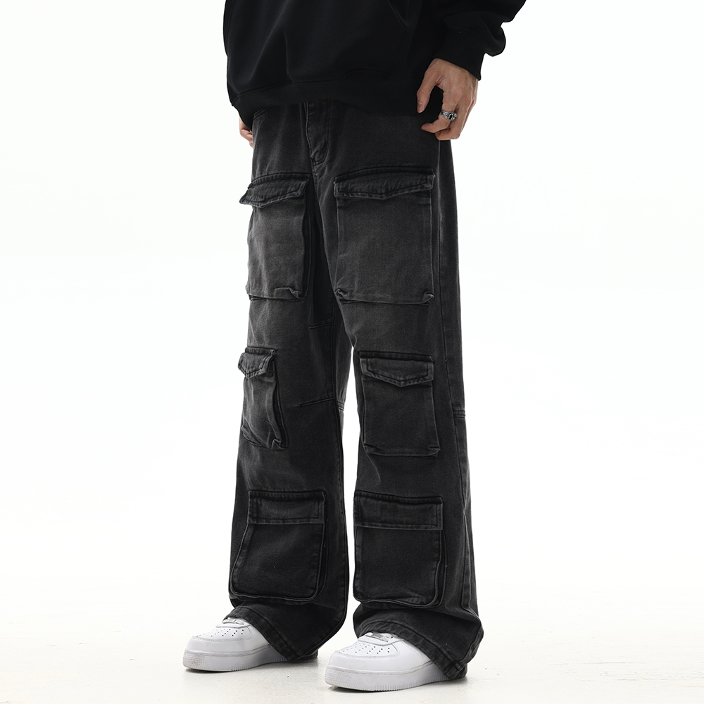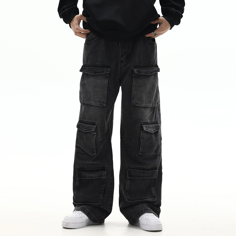 Men's Hip Hop Washed And Worn Loose Wide Leg Straight Pants