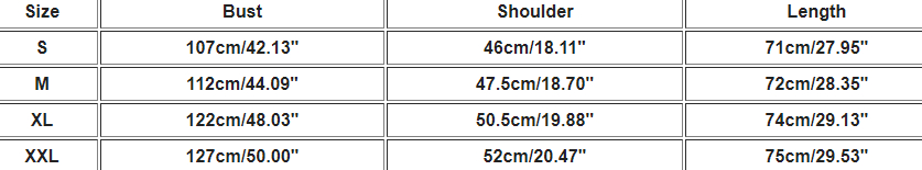 1. Asian sizes are 1 to 2 sizes smaller than European and American people. Choose the larger size if your size between two sizes. Please allow 2-3cm differences due to manual measurement. 2. Please check the size chart carefully before you buy the item, if you don't know how to choose size, please contact our customer service. 3.As you know, the different computers display colors differently, the color of the actual item may vary slightly from the following images.