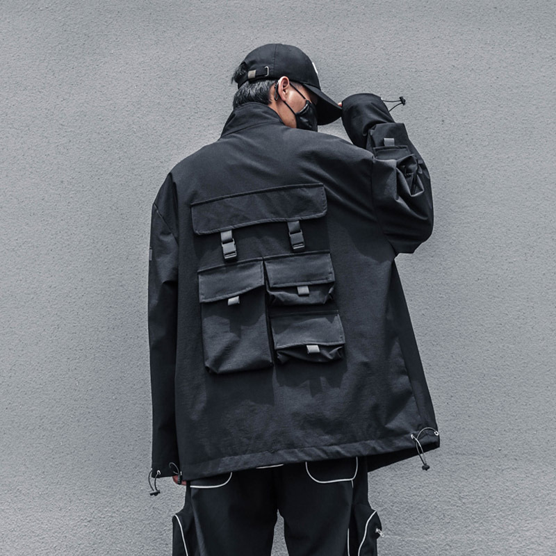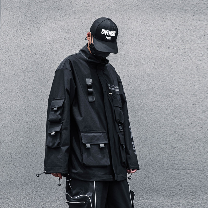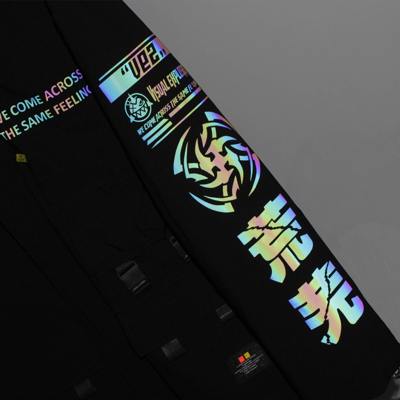 Mens Hooded Dark Functional Wind Letter Reflective Top Coat