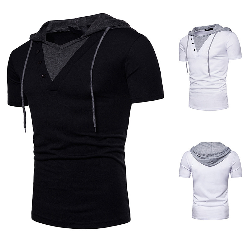 Men's hooded short-sleeved T-shirt