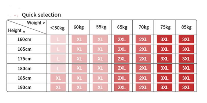 Sizes L, XL, XXL, XXXL, XXXXL