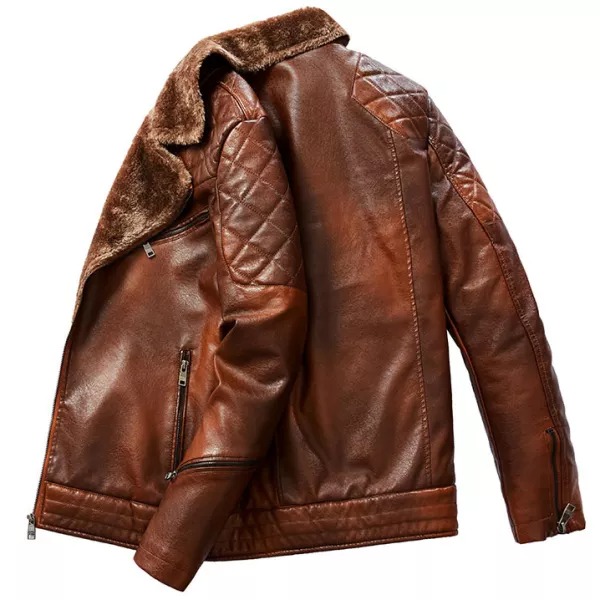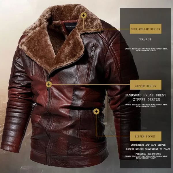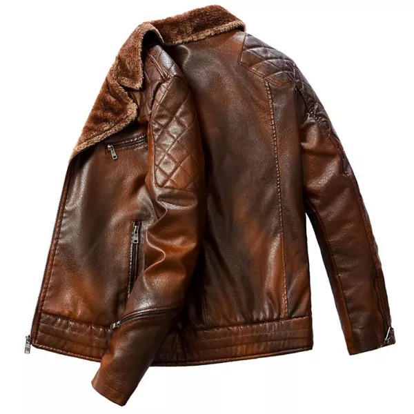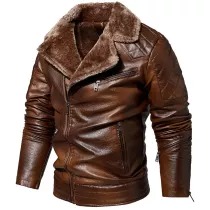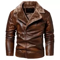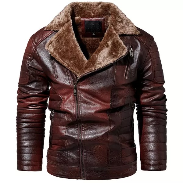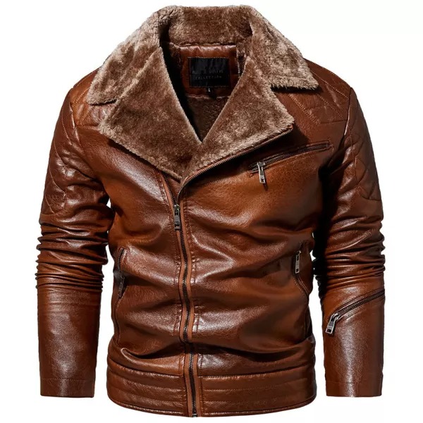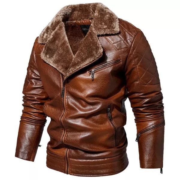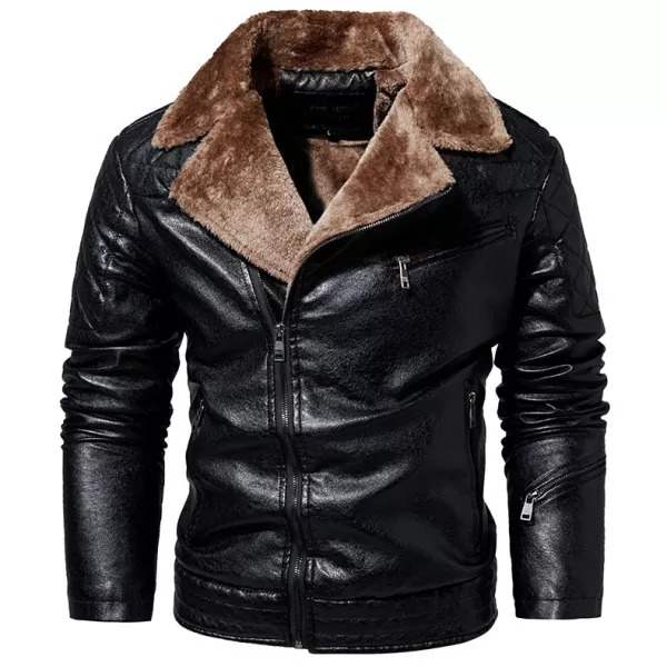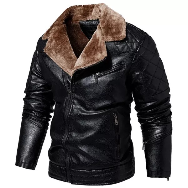 Men's Jacket Oblique Zipper Plus Fleece Suit Collar PU