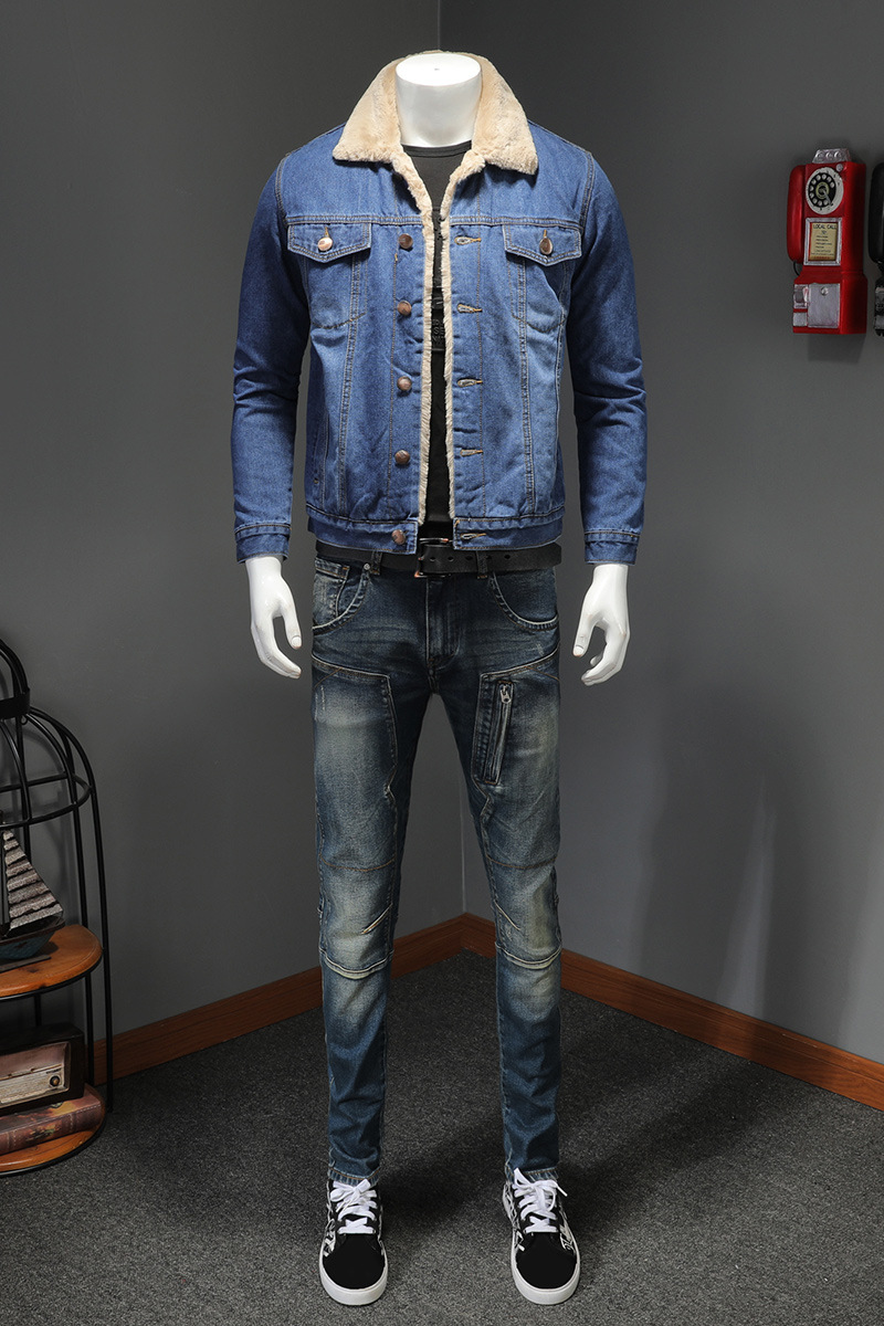 Men's Japanese Trendy Fleece-lined Thickened Denim Jacket Coat