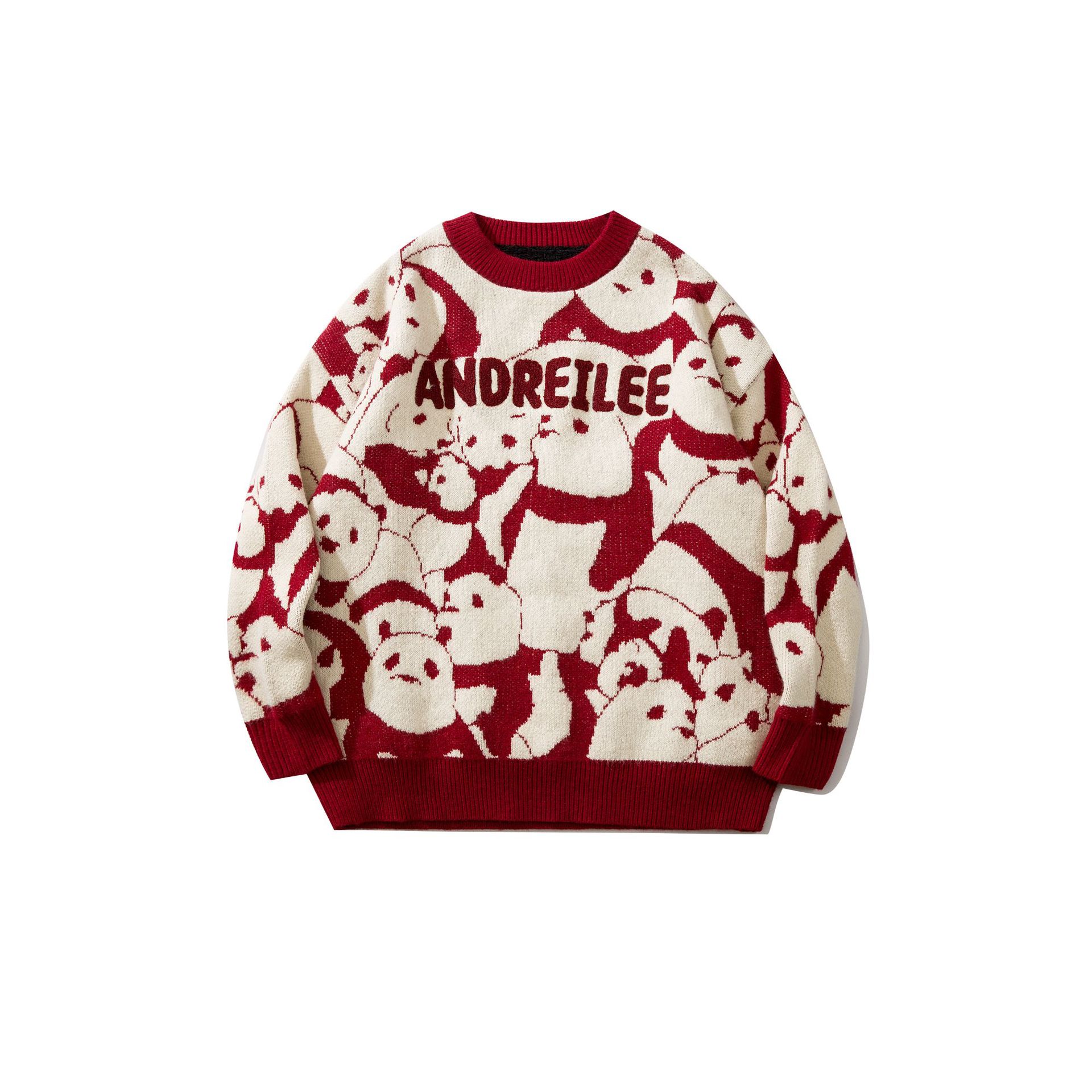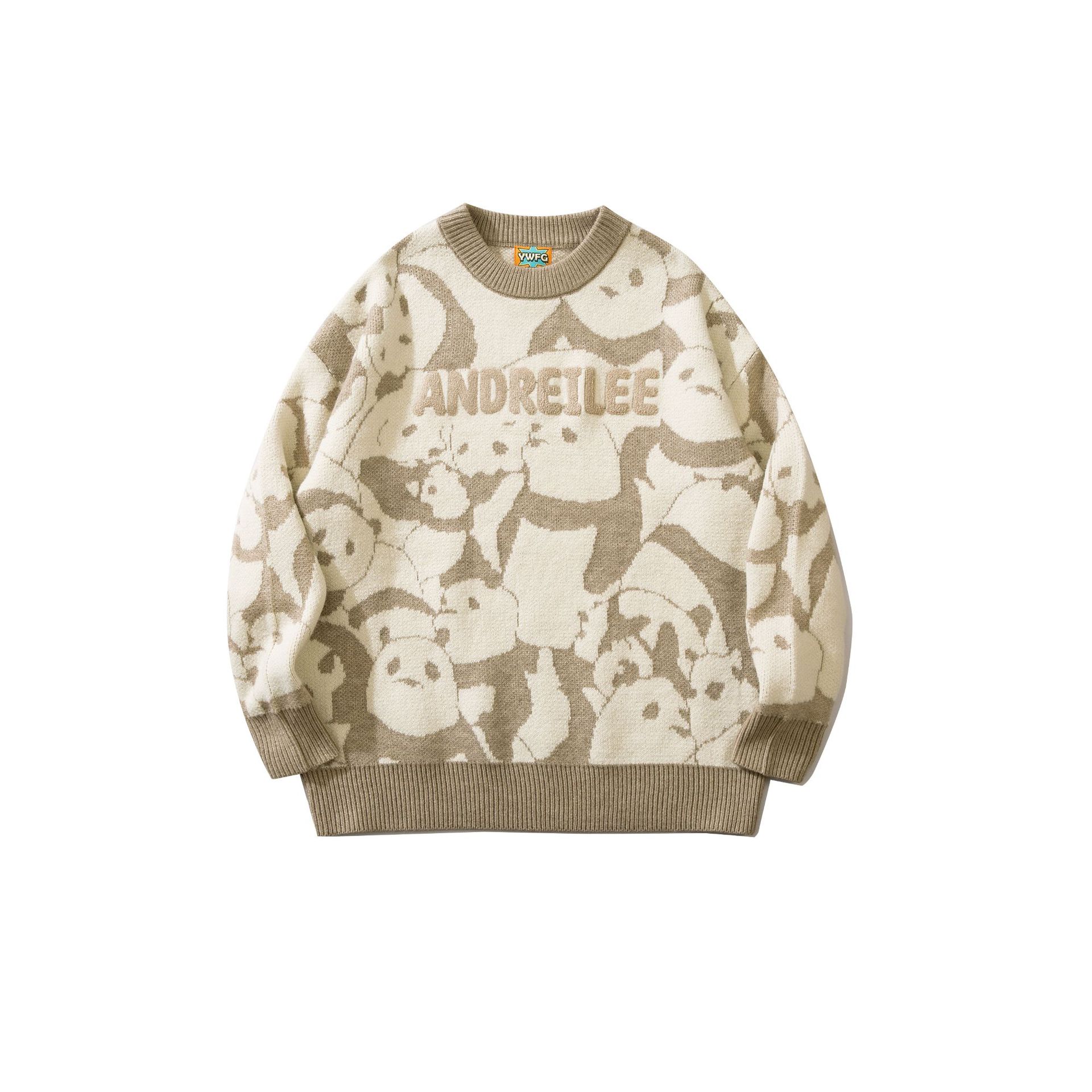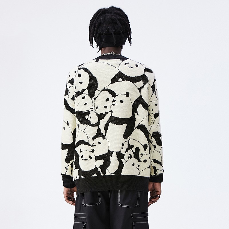 Men's Japanese Vintage Panda Jacquard Crewneck Knit Tide Brand Loose Sweater