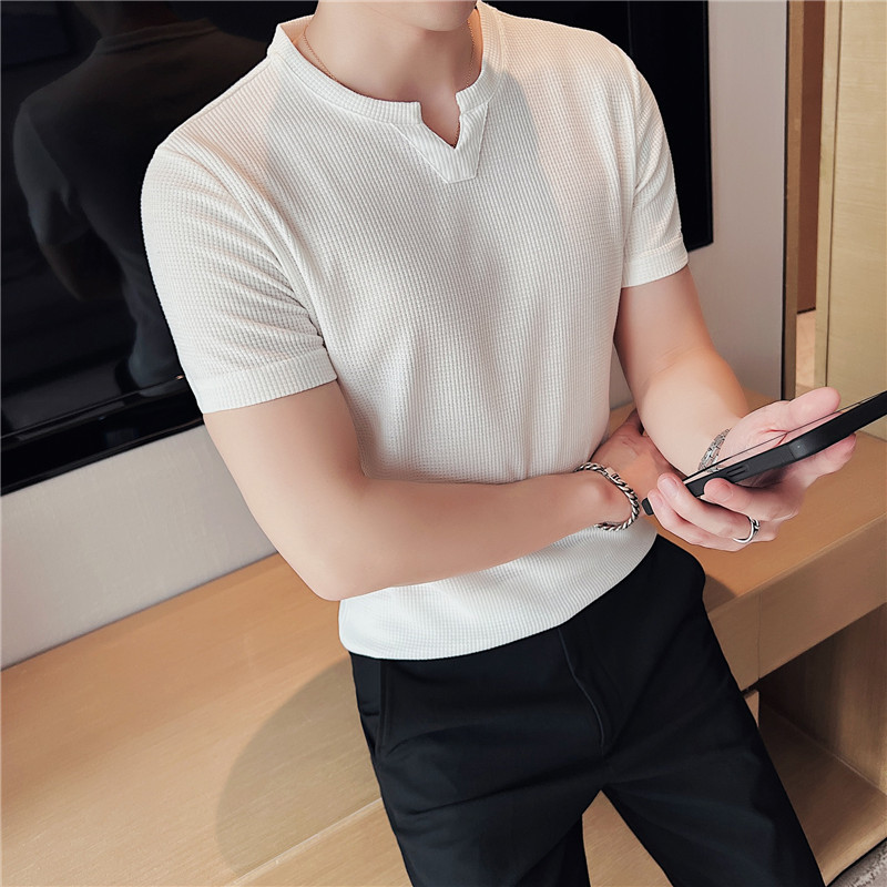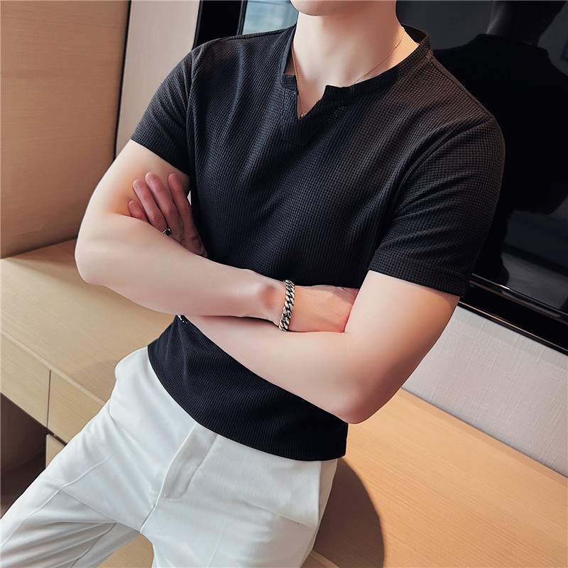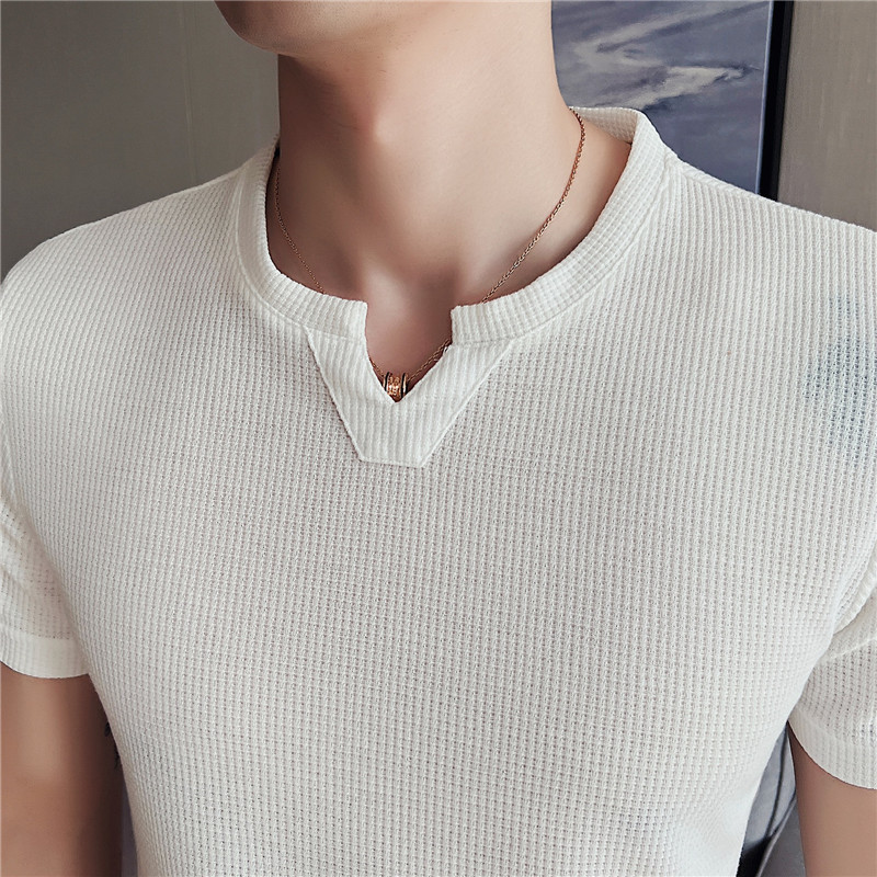 Men's Korean-style Pullover Waffle Short Sleeve