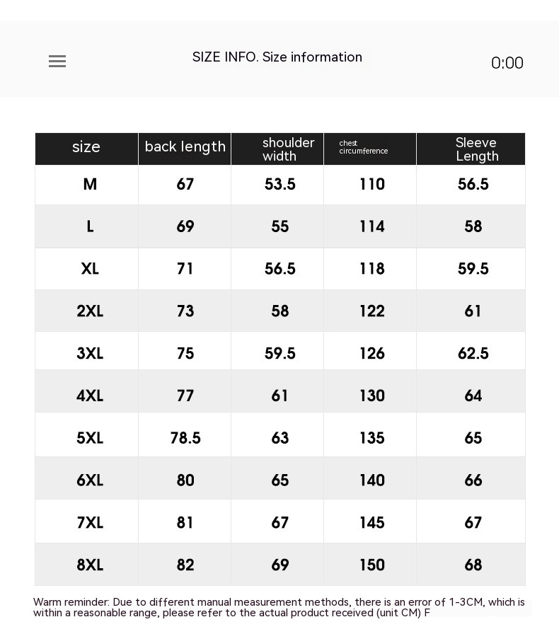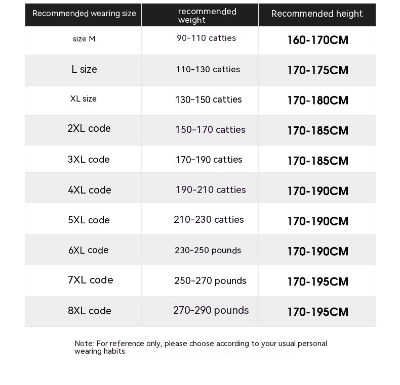 Size: M,L,XL,2XL,3XL,4XL,5XL,6XL,7XL,8XL