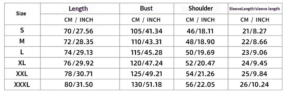 Sizes: S, M, L, XL, XXL, XXXL