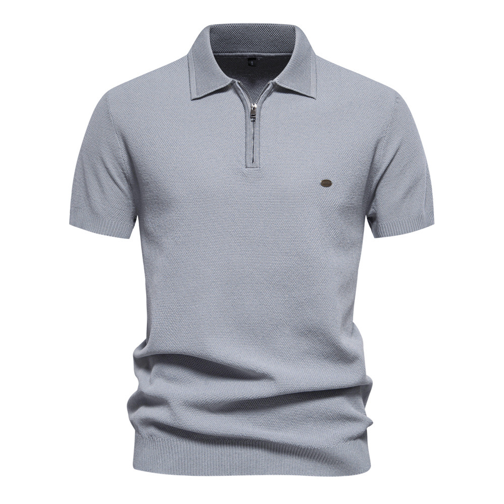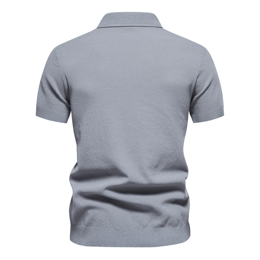 Men's Lapel Knitted Short Sleeve Solid Color Simple