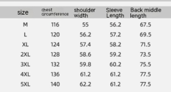 Size: M,L,XL,2XL,3XL,4XL,5XL