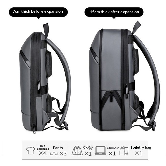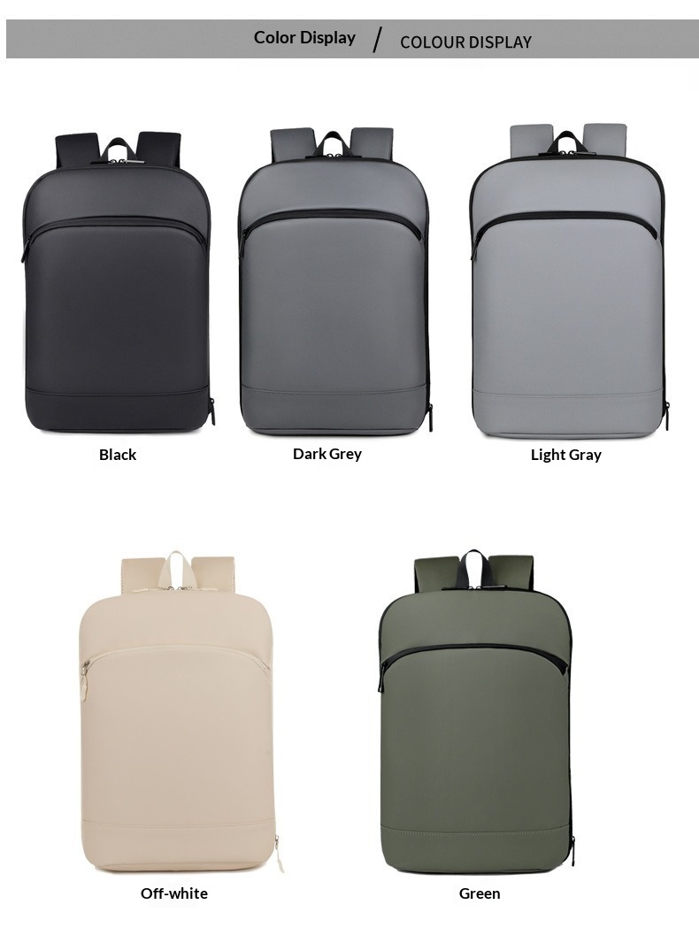 Colors: [Black] Expandable Business Backpack—Small-batch customization available; [Dark Gray] High-Capacity Backpack—Dropshipping supported; [Light Gray] Laptop Bag—Free logo design provided; [Off-White] Ultra-Thin Backpack—Ships within 24 hours.