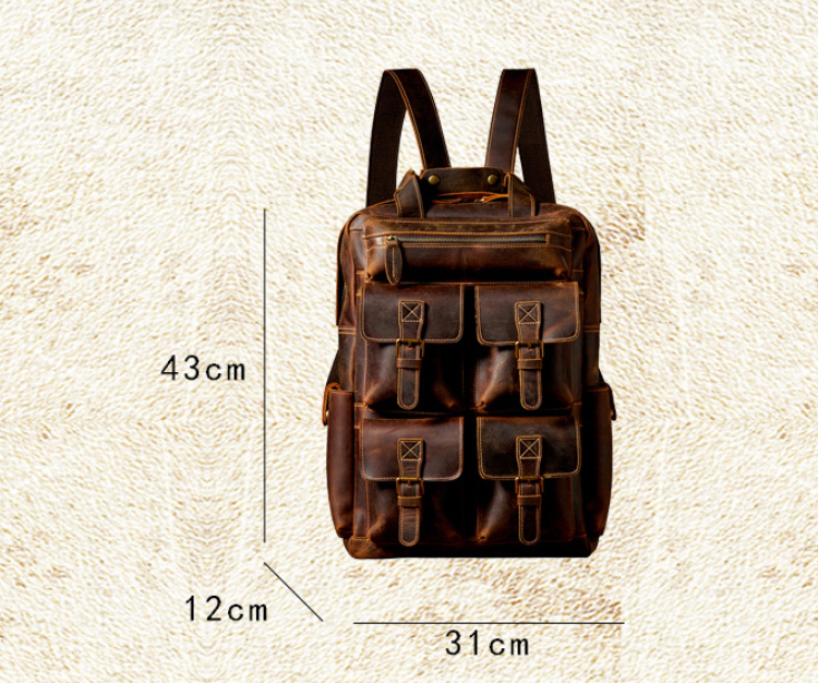 Men's Large Capacity Retro Outdoor Travel Leather Backpack