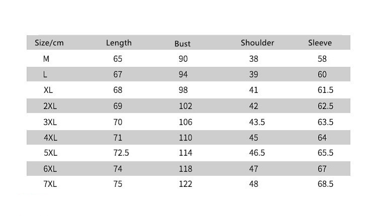 Size: L,XL,XXL, XXL,XXXXL,5XL,6XL,7XL