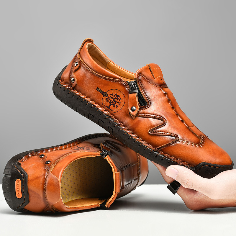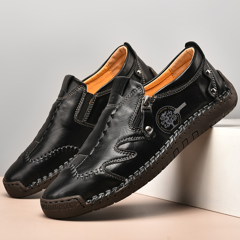 Men's Large Size Zipper Business Leather Shoes