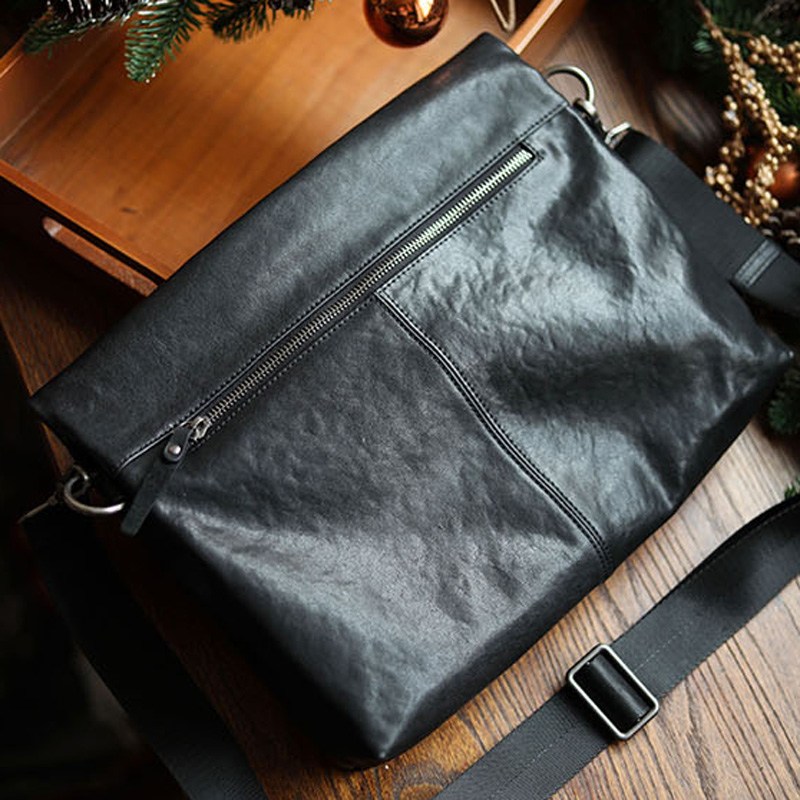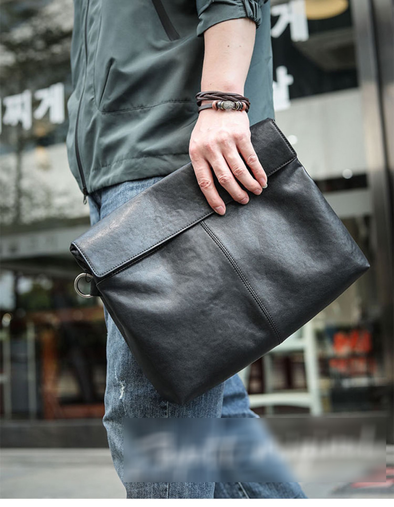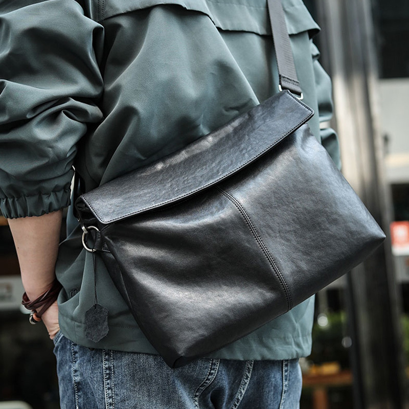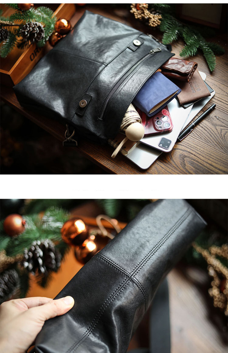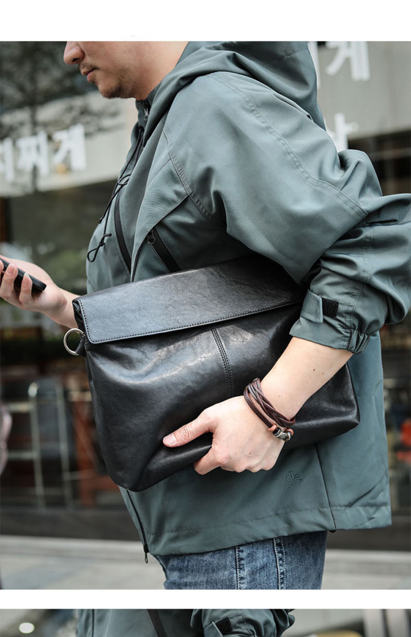 Men's Leather One Shoulder Crossbody Bag A4 File Bag Handheld Briefcase