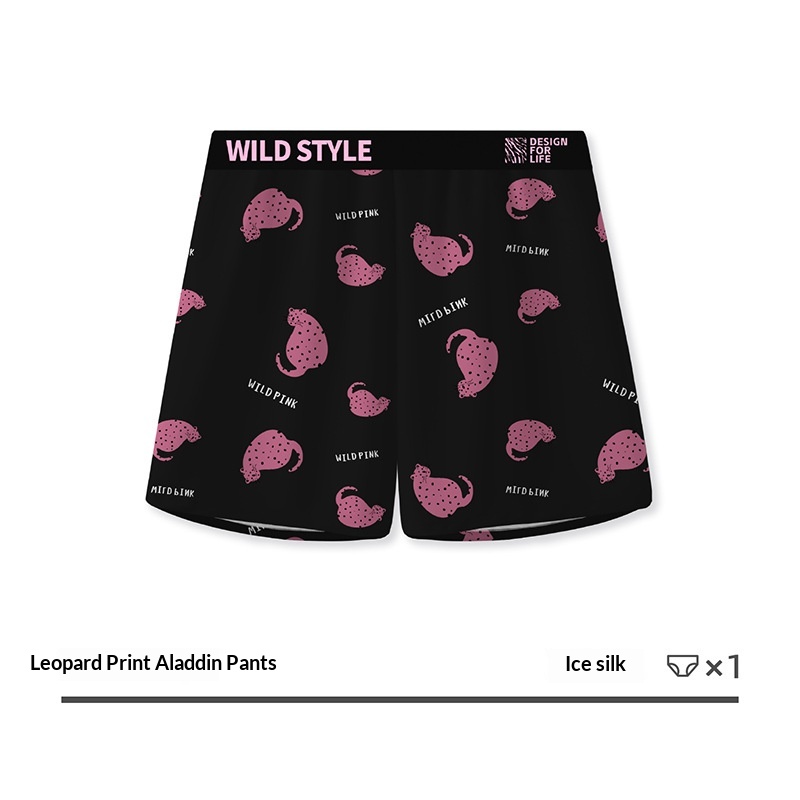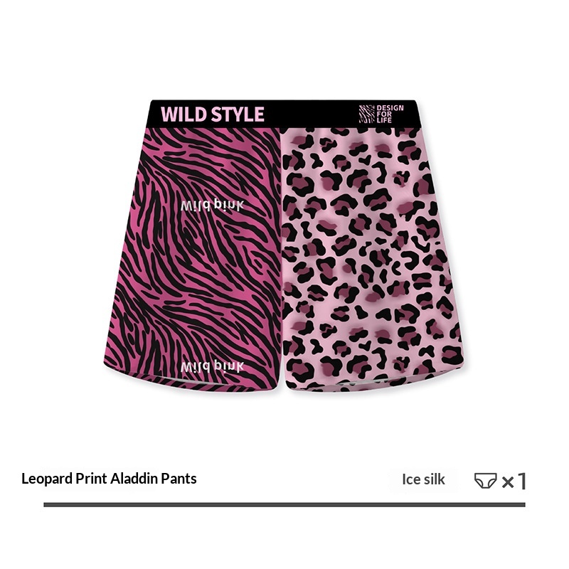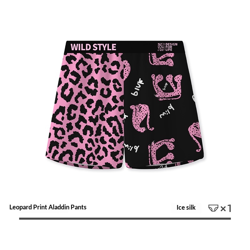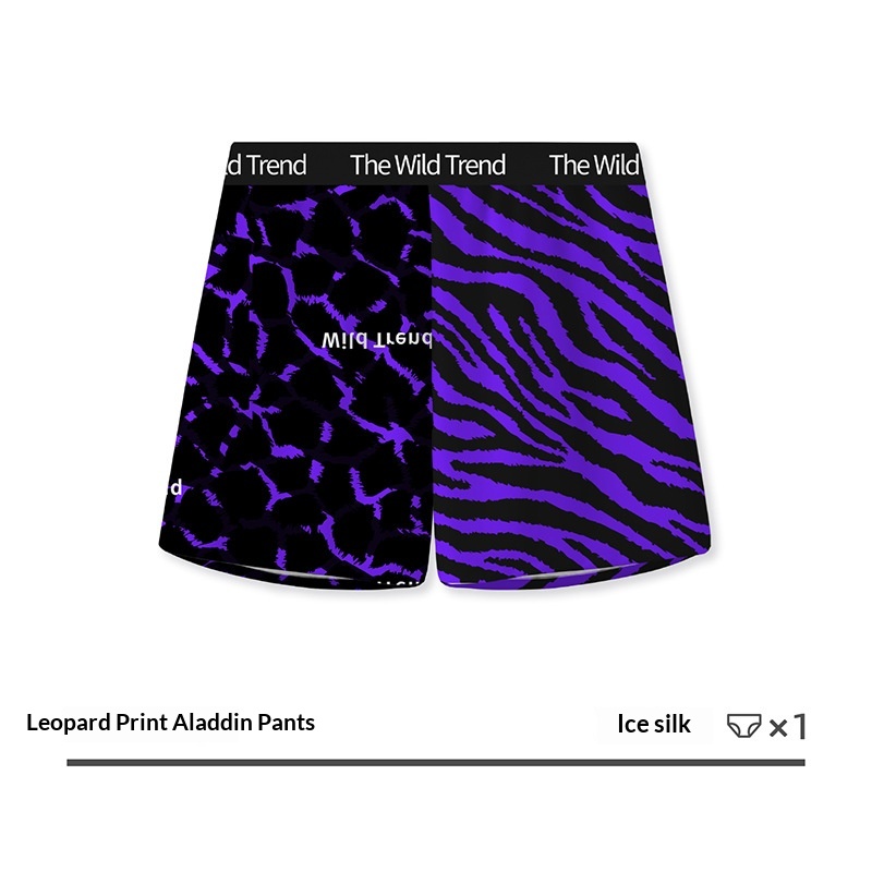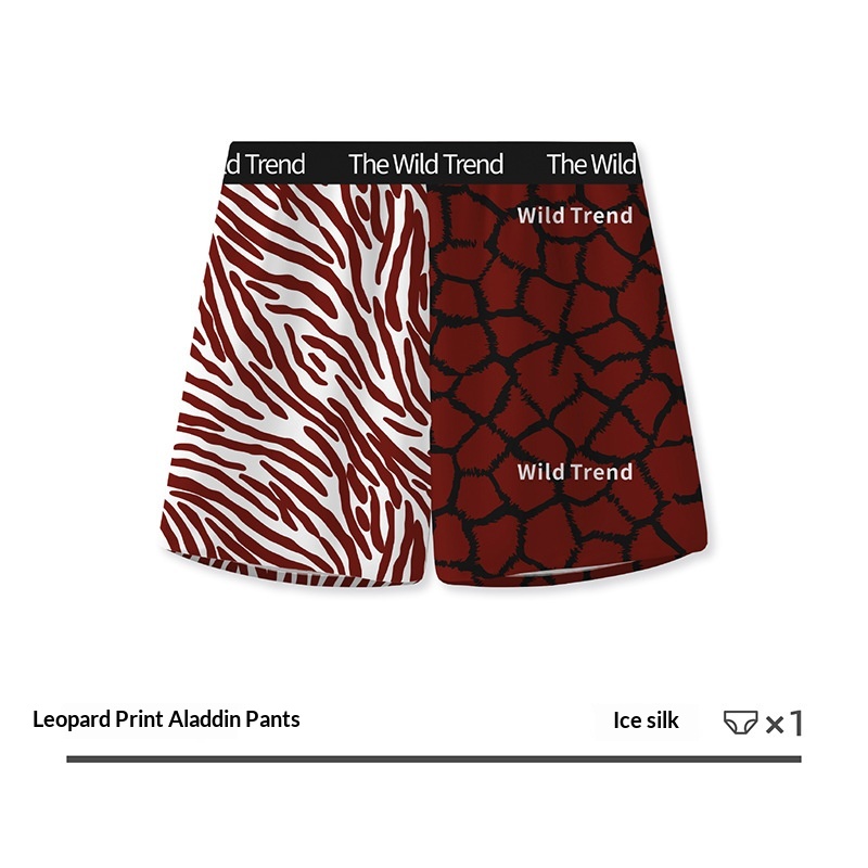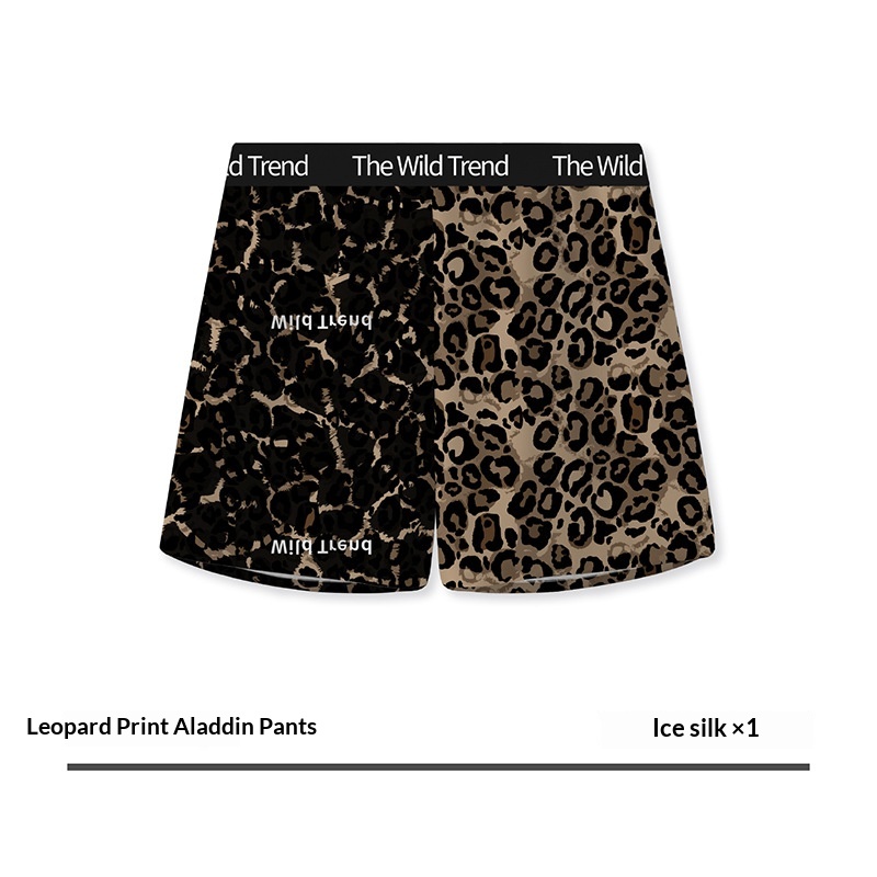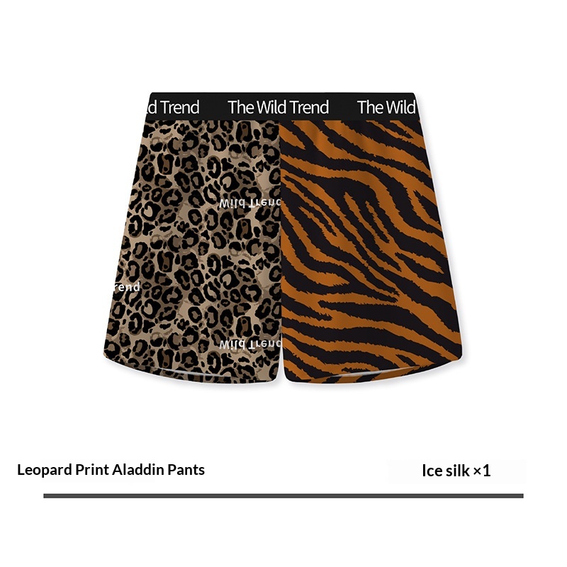 Mens Leopard-Print Ice Silk Aloha Pants With Printed Design For Home Wear