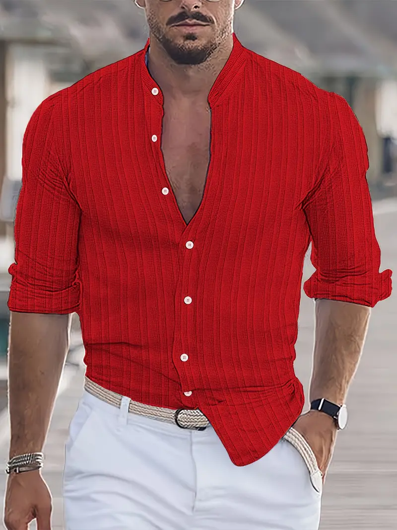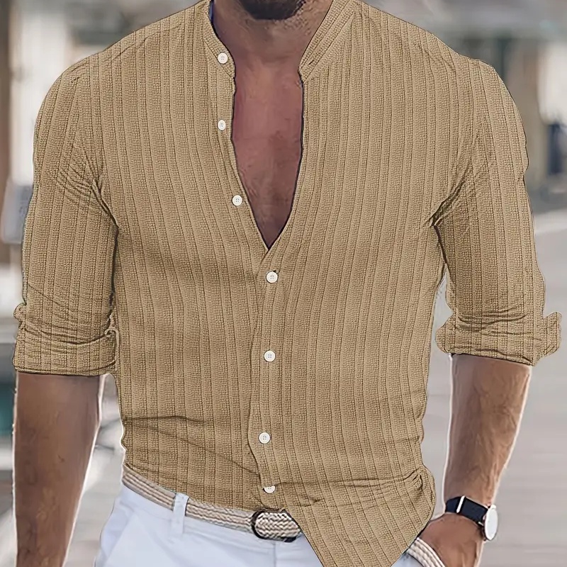 Men's Lightweight Button-up Long-sleeved Striped Top