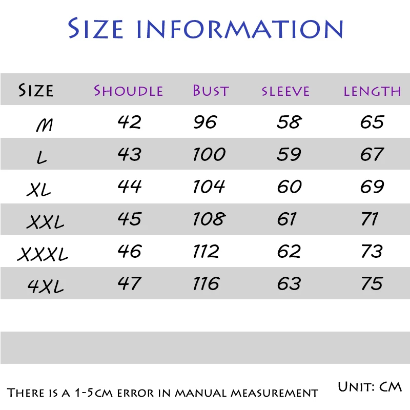 Size: 165/M recommend 50.00kg-6200kg, 170/L recommend 6200kg-67.50kg,175/XL recommend 67.50kg-75.00kg,180/2XL recommend 75.00kg-82.50kg, 185/3XL recommend 82.50kg-90.00kg, 190/4XL recommend 90.00kg-100.00kg